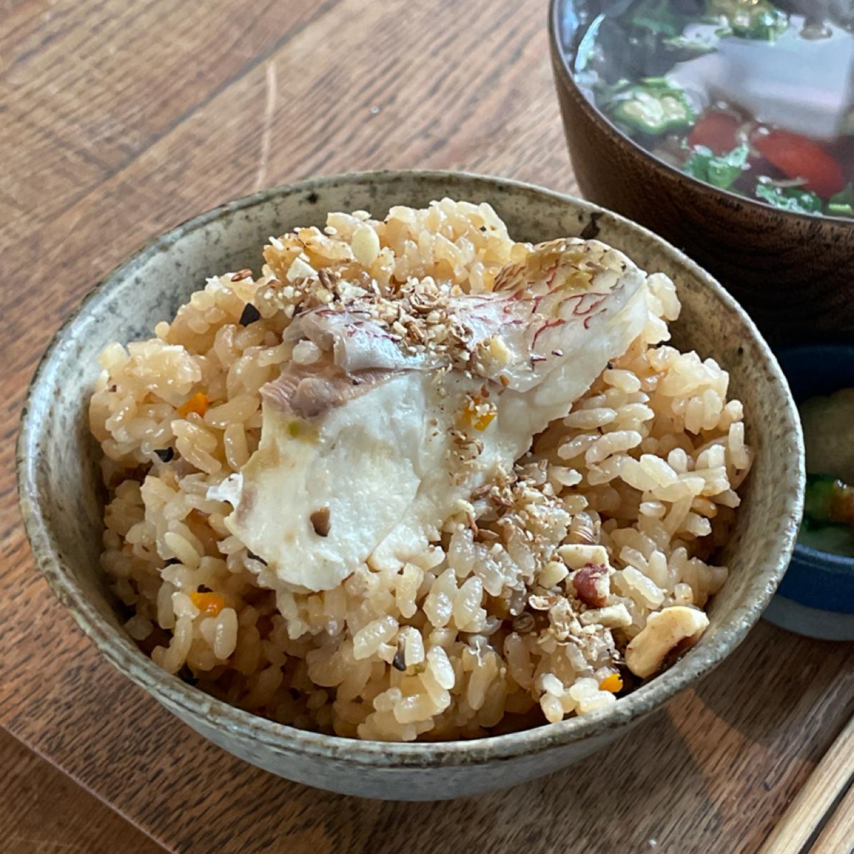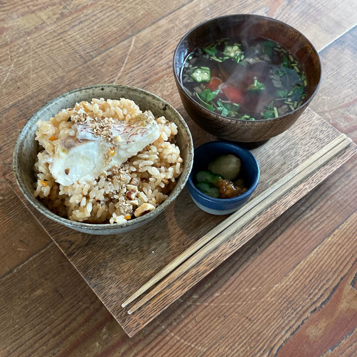 📍 鯛とオリーブのかやくご飯/季節の汁/ほうじ茶 ¥990