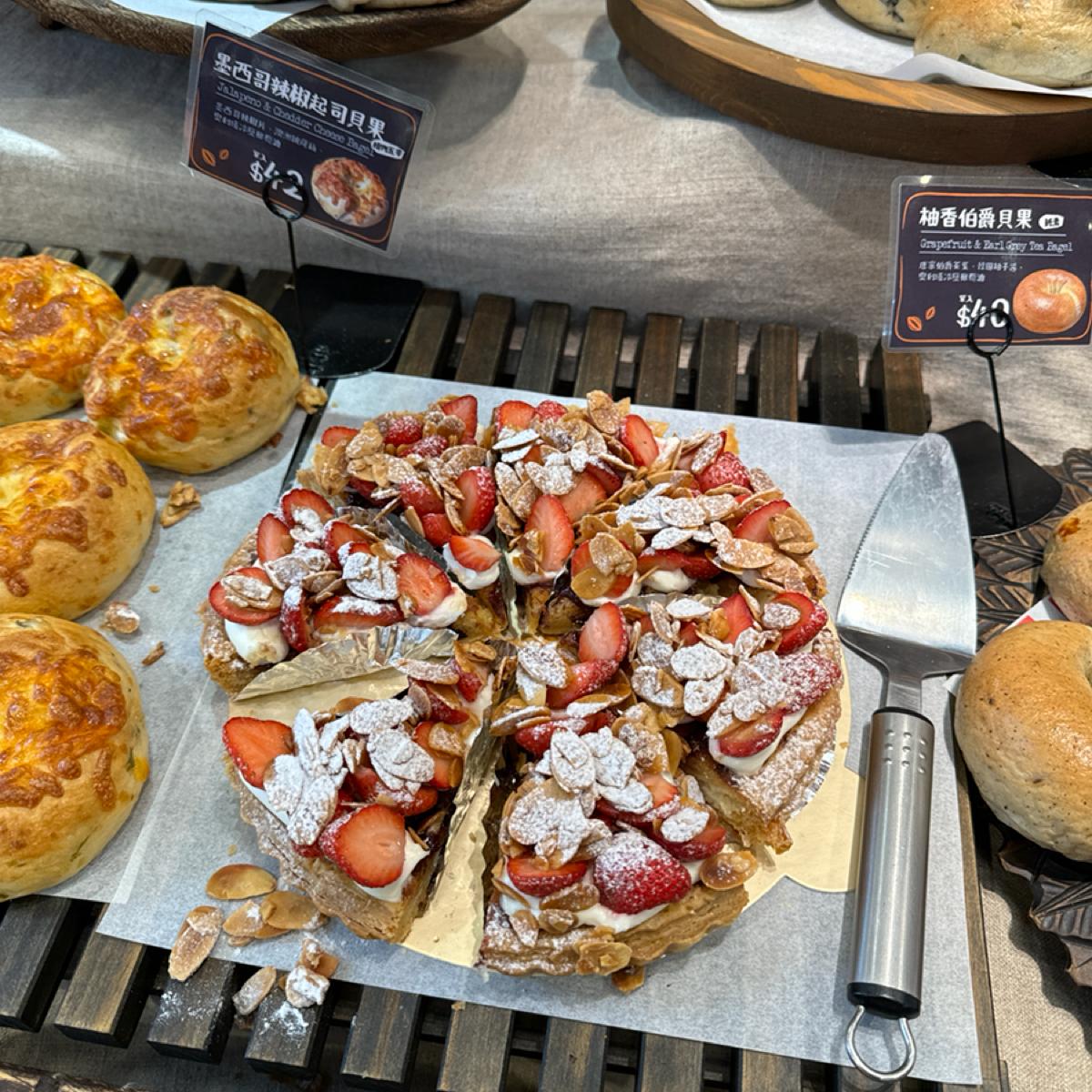 -いちごのタルト- タルト生地はフランスのミルフィーユタルト生地ですが、下の層はあまり層になっておらず、しっぽの部分だけがはっきりと層になっています。ほんのり酸味のあるイチゴとローストキャラメルアーモンドスライスがトッピングされています。 アーモンドスライスは大きくて真心込められています。真ん中にはブルーベリージャムと果肉が入っていて、クリームチーズソースとの組み合わせが絶妙で、全体的に少し酸味がありながらも脂っこくない味わいになっています。アーモンドタルトの餡は甘すぎず、とても満足のいくものです。全体的な組み合わせはとても爽やかで、ベタつかず良い感じです。