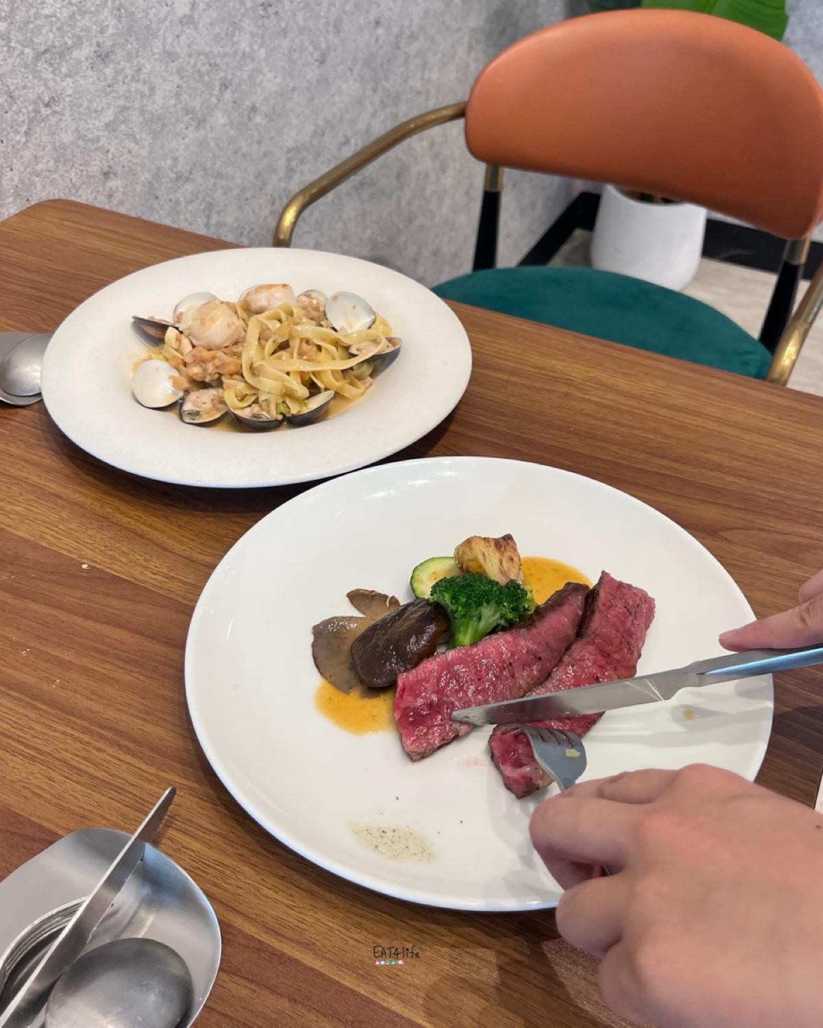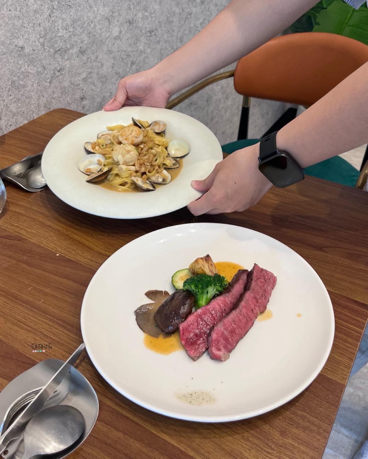 7分焼きの牛サーロインが、デミグラスソースと昆布塩とともに提供されます。牛肉は事前にマリネされているので、全くソースを加えなくても非常に美味しいですし、焼き加減も絶妙で、肉質は柔らかくジューシーです!隣のサイドディッシュも手を抜かず、ブロッコリーや秀珍茸などはすでに燻製されていますし、ポテトは非常にクリーミーです!ぜひみんなにオススメしたい一品です!