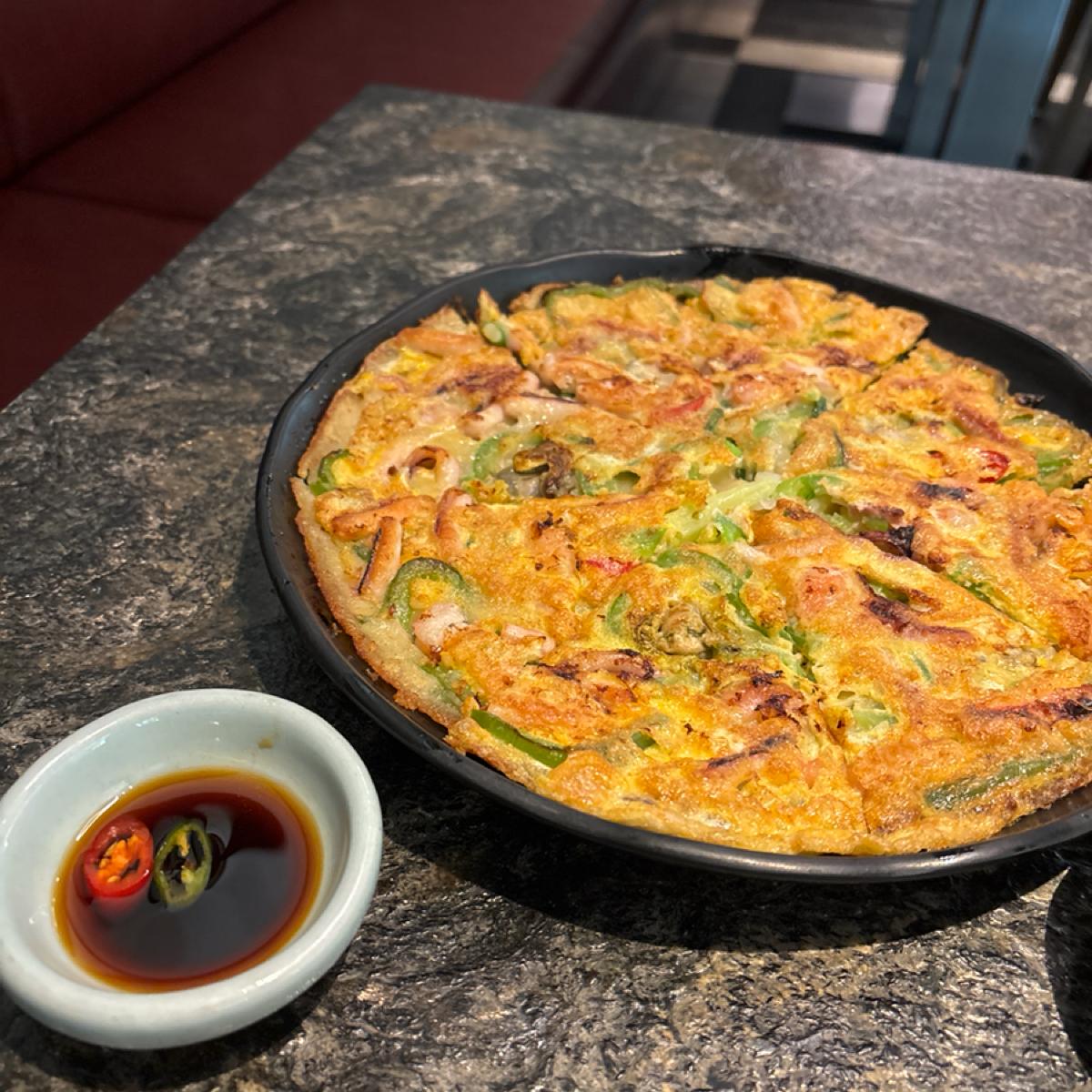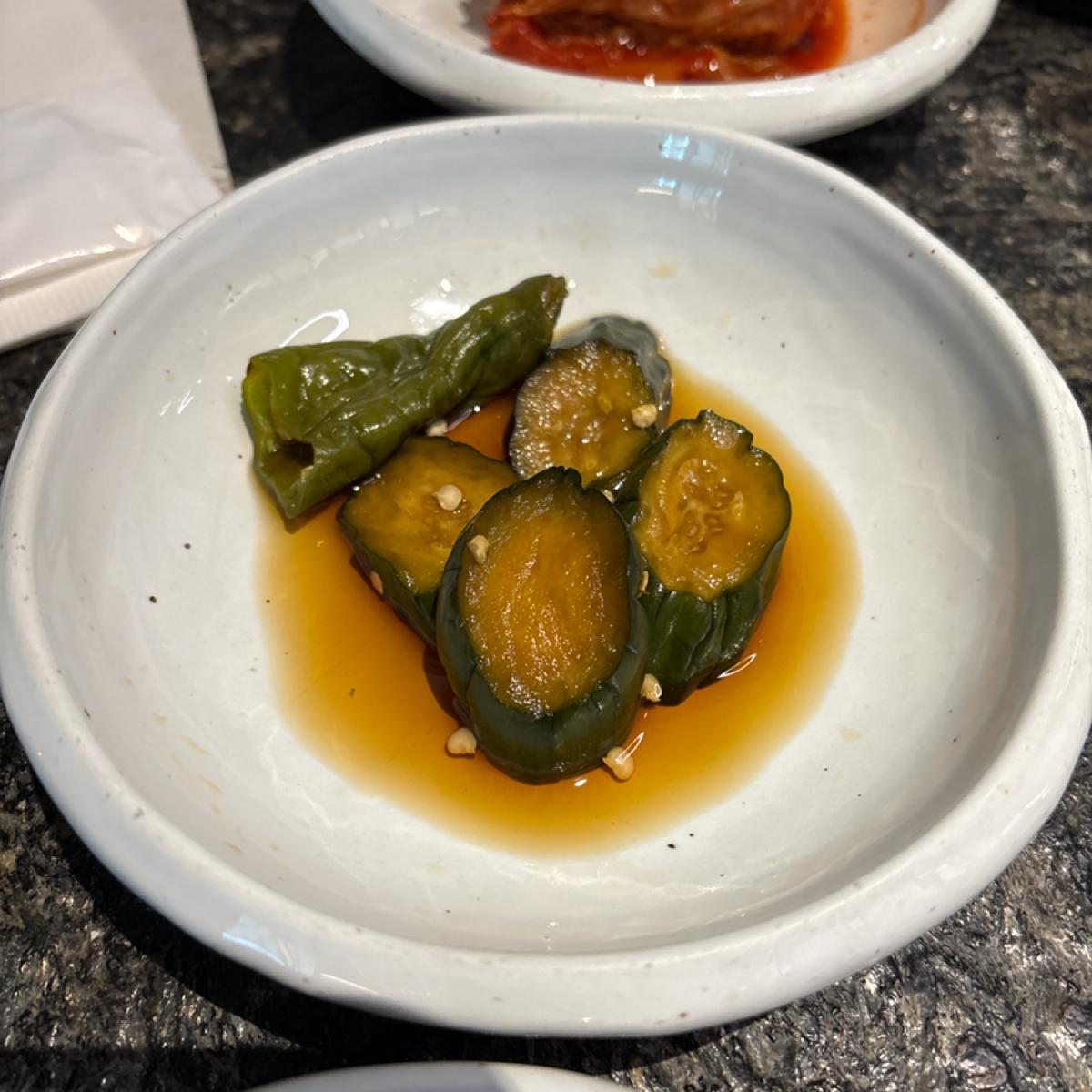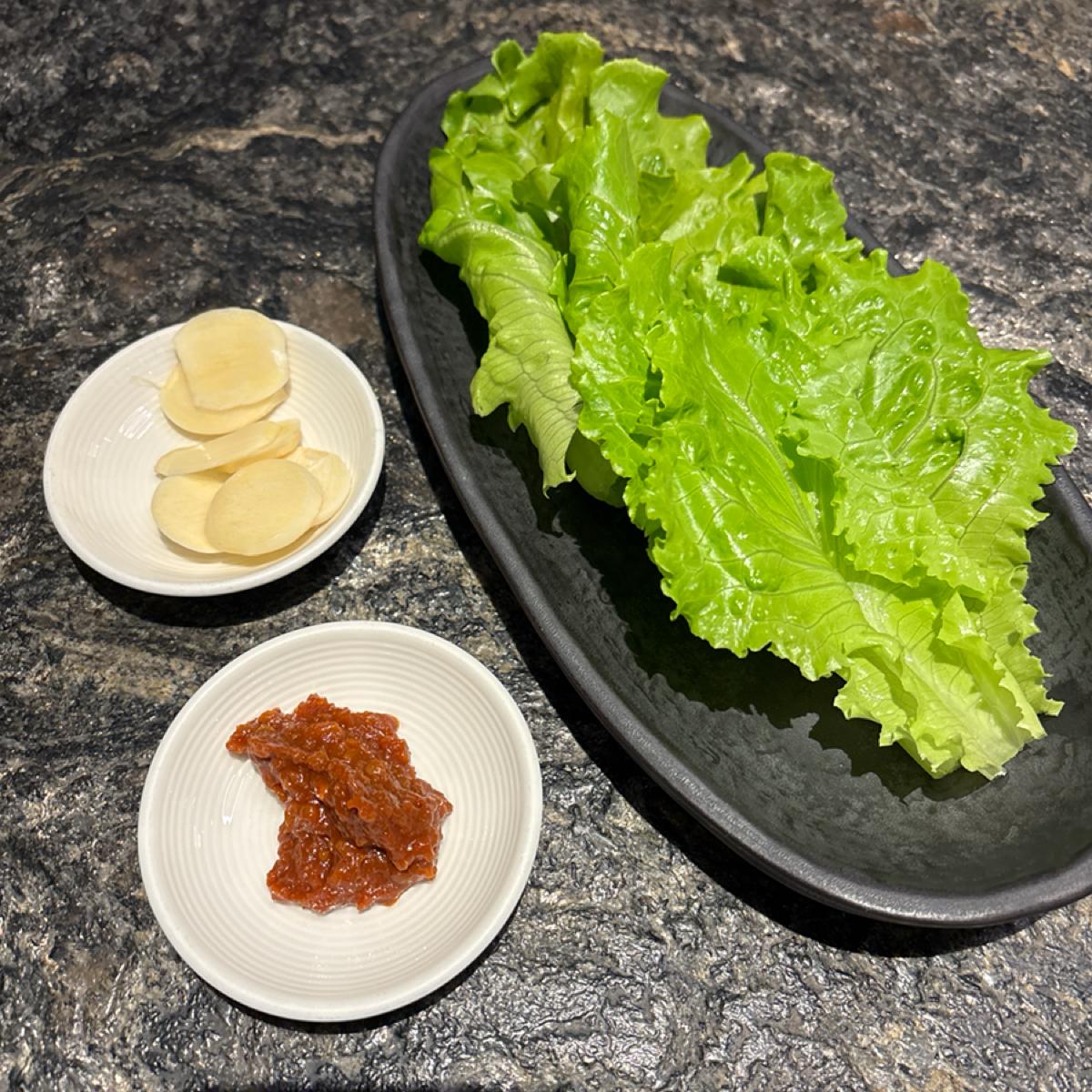 価格はやや高めの韓国料理ですが、実際にはボリュームがかなりありますので、多人数の集まりに適しています。全体的な食事体験は非常に良かったです。環境は快適で騒がしくなく、サイドディッシュの種類も豊富で味も良く、毎回食べ終わるとすぐに補充したくなります。一番印象に残ったのは、前菜のトマトで、使われているソースは多くのフルーツの風味が混ざっています。名物の牛カルビと辛炒め豚肉はどちらも濃い味付けですが、油っこくなく、新鮮でシャキッとしたレタスと一緒に食べることで飽きが来ません。非常におすすめです。