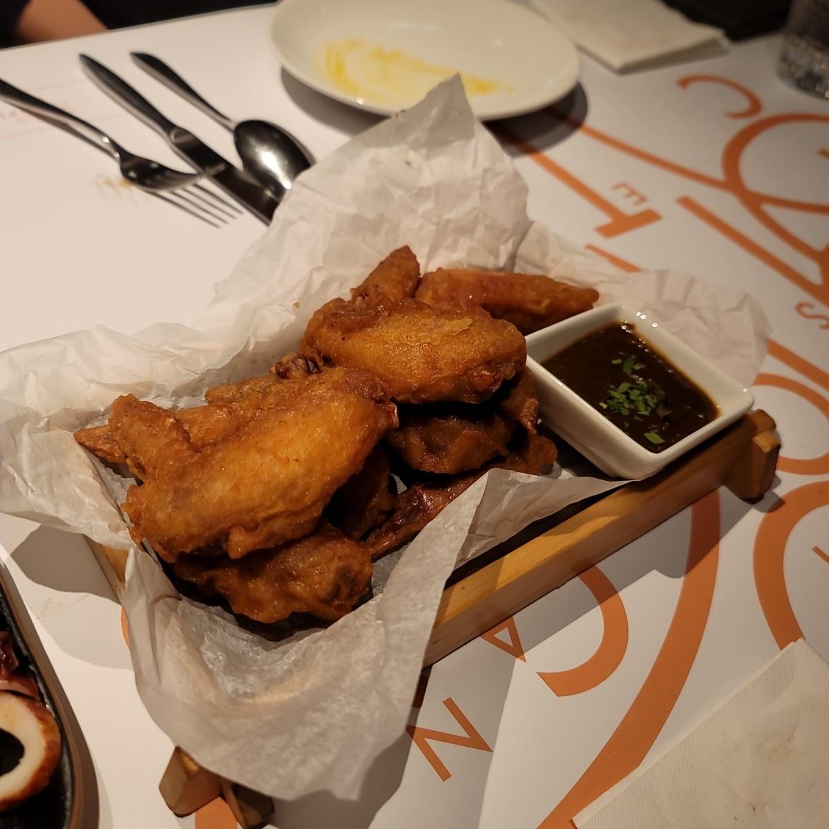 名物の手羽先の唐揚げは、外皮が黄金色にカリカリに揚がり、噛むと煙が立ち込め、新鮮な肉と柔らかな食感がクセになります。