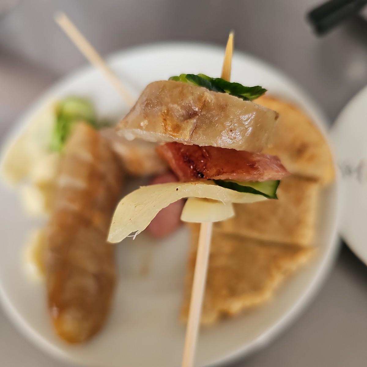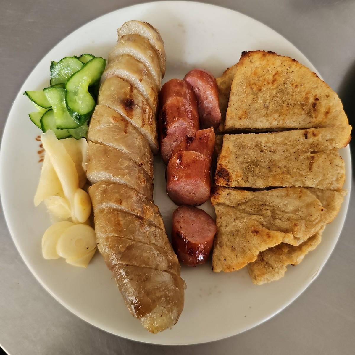 ライスソーセージは外はカリっと焼き上げられ、中はもちっとしたお米の香りと軽いピーナッツの香りがあり、ソーセージはもちもちとした食感でとても風味豊かです。濃厚な具材をスイートチリソース+醤油ペーストにかけて食べると、ガーリックとソーセージが味を支配し、その他のトッピングも味わいを引き立てます。美味しいと思いますよ〜。