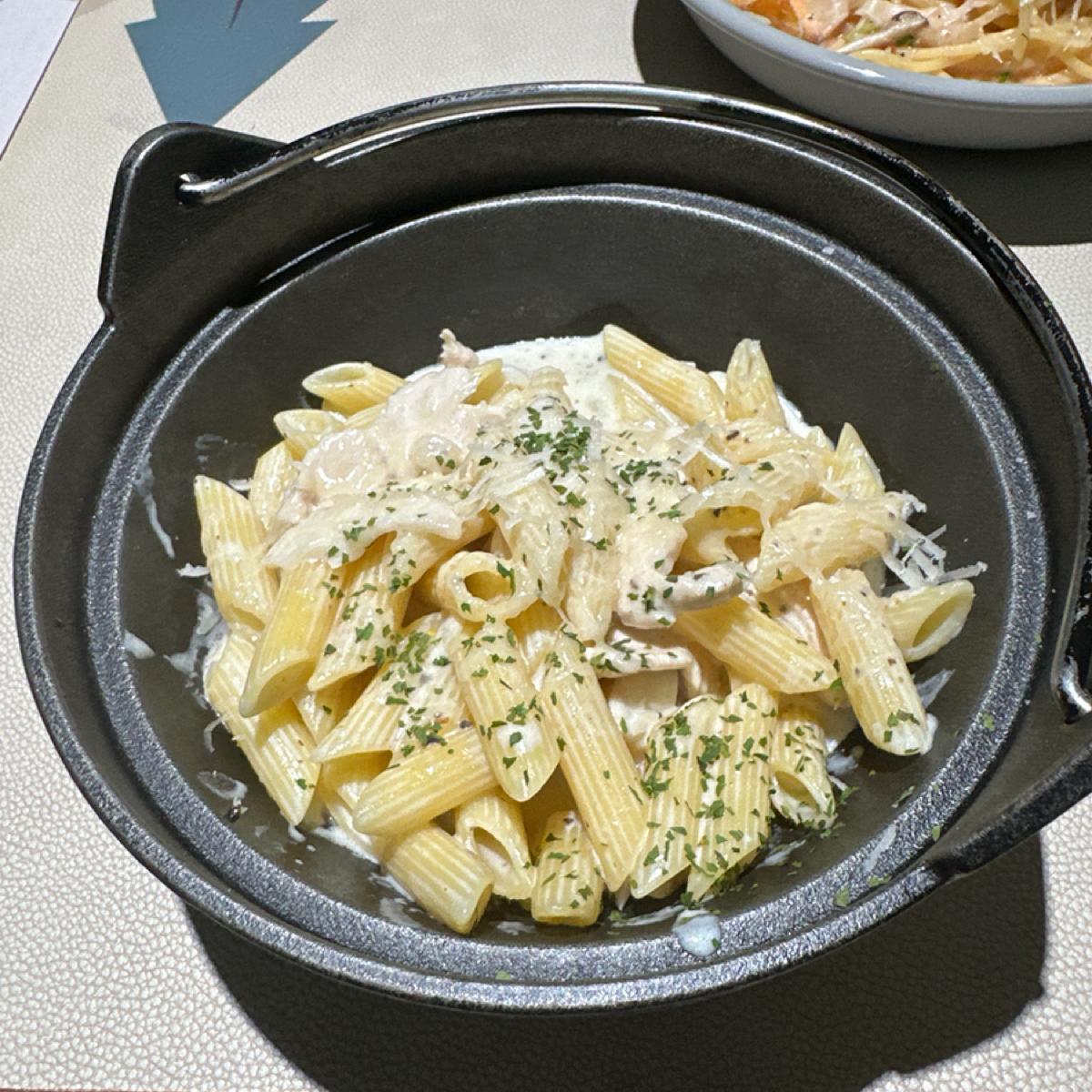 黒トリュフの香りとクリームの滑らかな食感が麺をさらに美味しくします チキンの柔らかさに黒トリュフクリームの芳醇な香りが加わり、最後までベタつかないクリームソースです。塩気もちょうど良く、飾り野菜は入っていないのですが、コストパフォーマンスが良くて美味しい定番の味です!