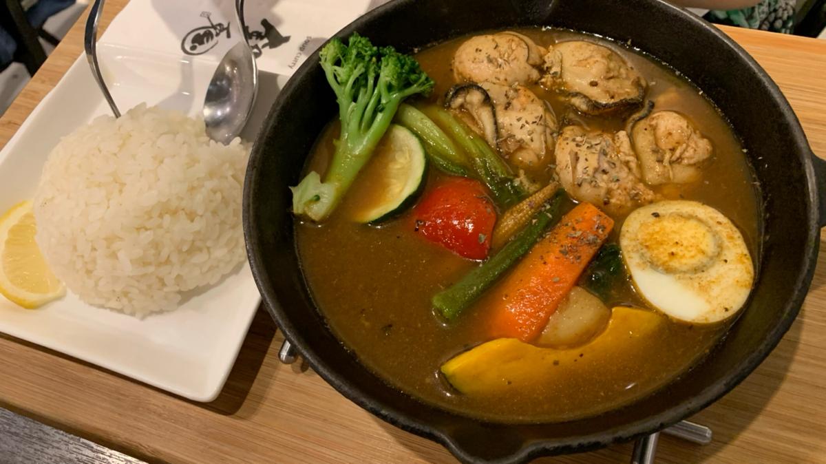 さらに、カキのスープカレーを注文しましたが、5個のカキが新鮮で美味しく、ぜひおすすめです。
