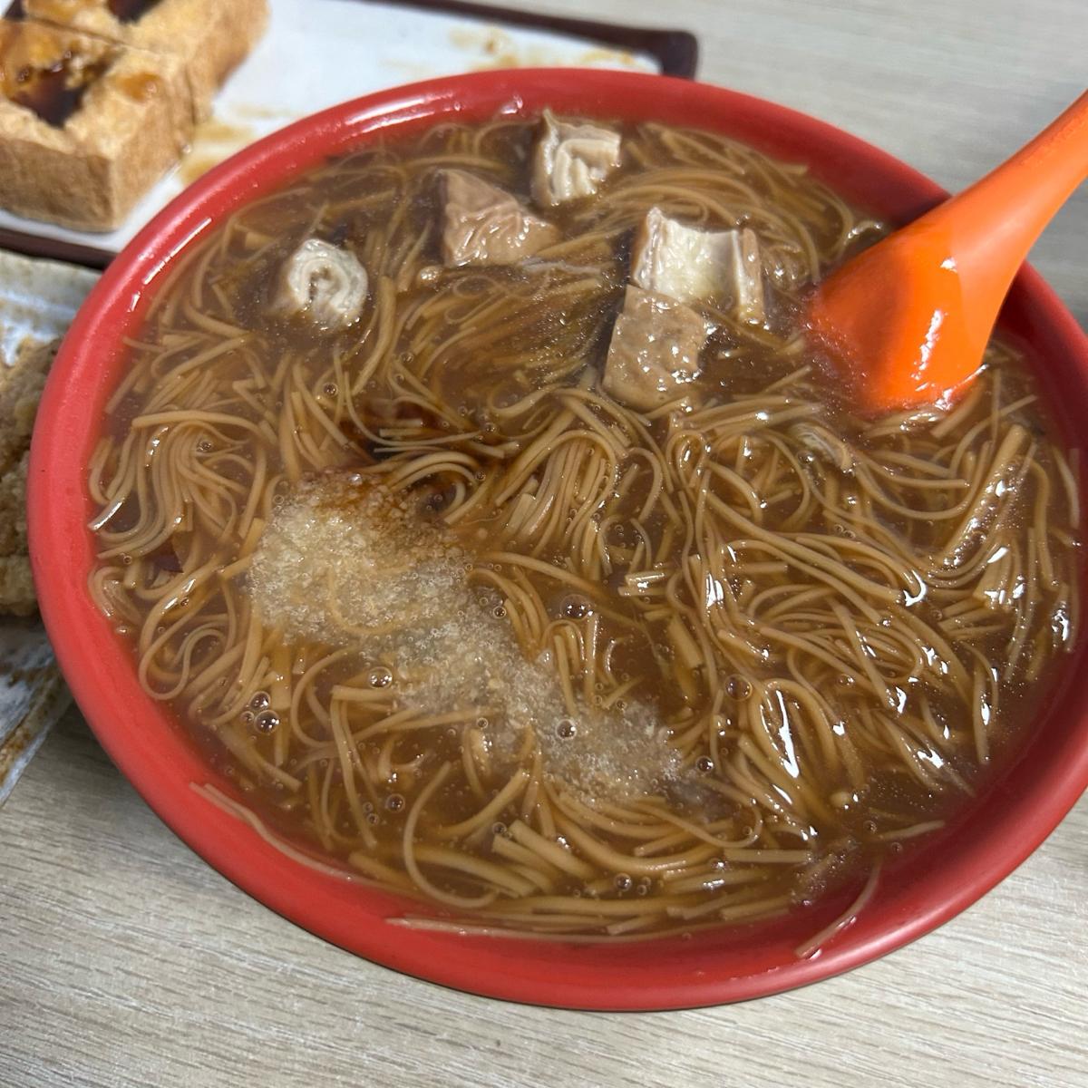 スープは少し塩辛く、辛さは微辛の程度です。