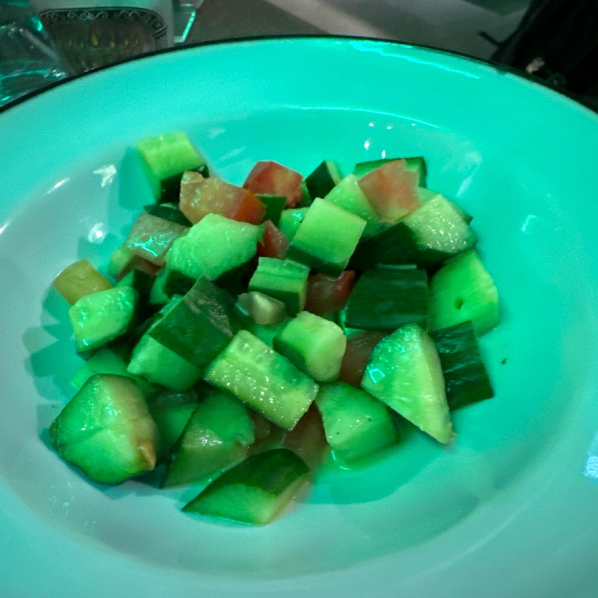 ~サラダ~キュウリ自体には特別な味付けはされておらず、横にあるソースは少し酸味がありヨーグルトのような味わいです。