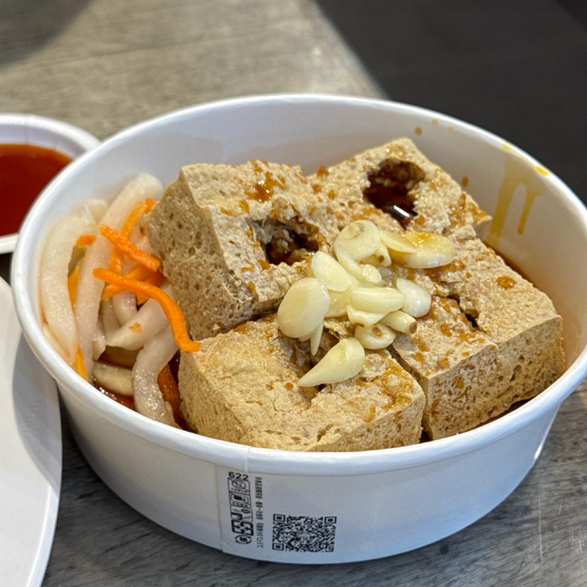 三品目は清蒸臭豆腐。臭豆腐はジューシーで味が浸みていて、隣の香ばしい調味料は本当に必食の一品です。