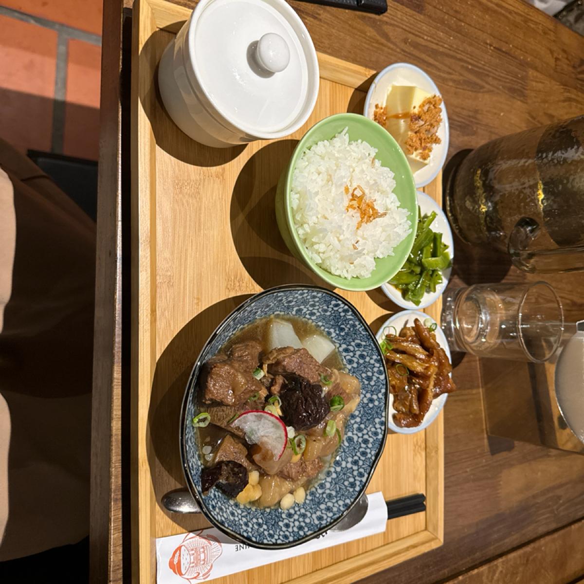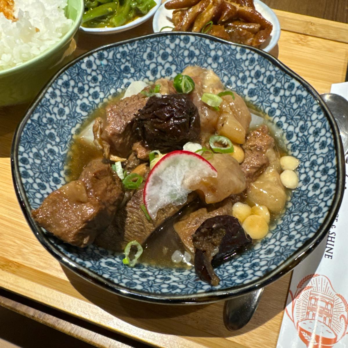 ・牛すじ煮込み ダブルデーツ付き ライス $390 ・すじはかなり柔らかく、味付けは比較的薄めでタレの味もマイルド、付け合わせには大根もたくさん入っていて満足です