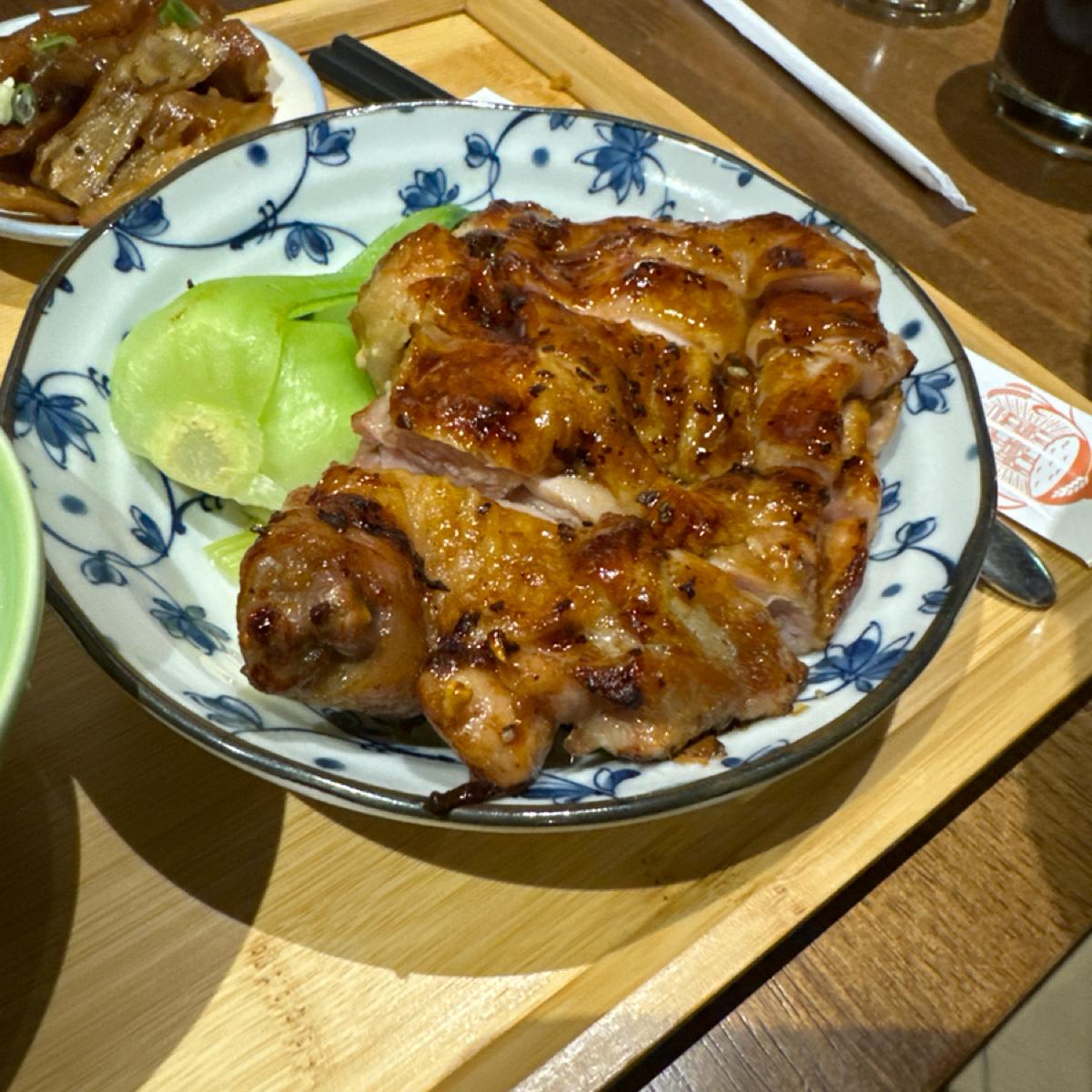 -ローストチキンライス with ブラックデーツソース $370-鶏もも肉の端をカリカリに揚げることができ、丁寧に揚げている感じがします。タレは最後に皮に刷毛で塗り、鶏肉自体にはあまり味付けをしておりません。