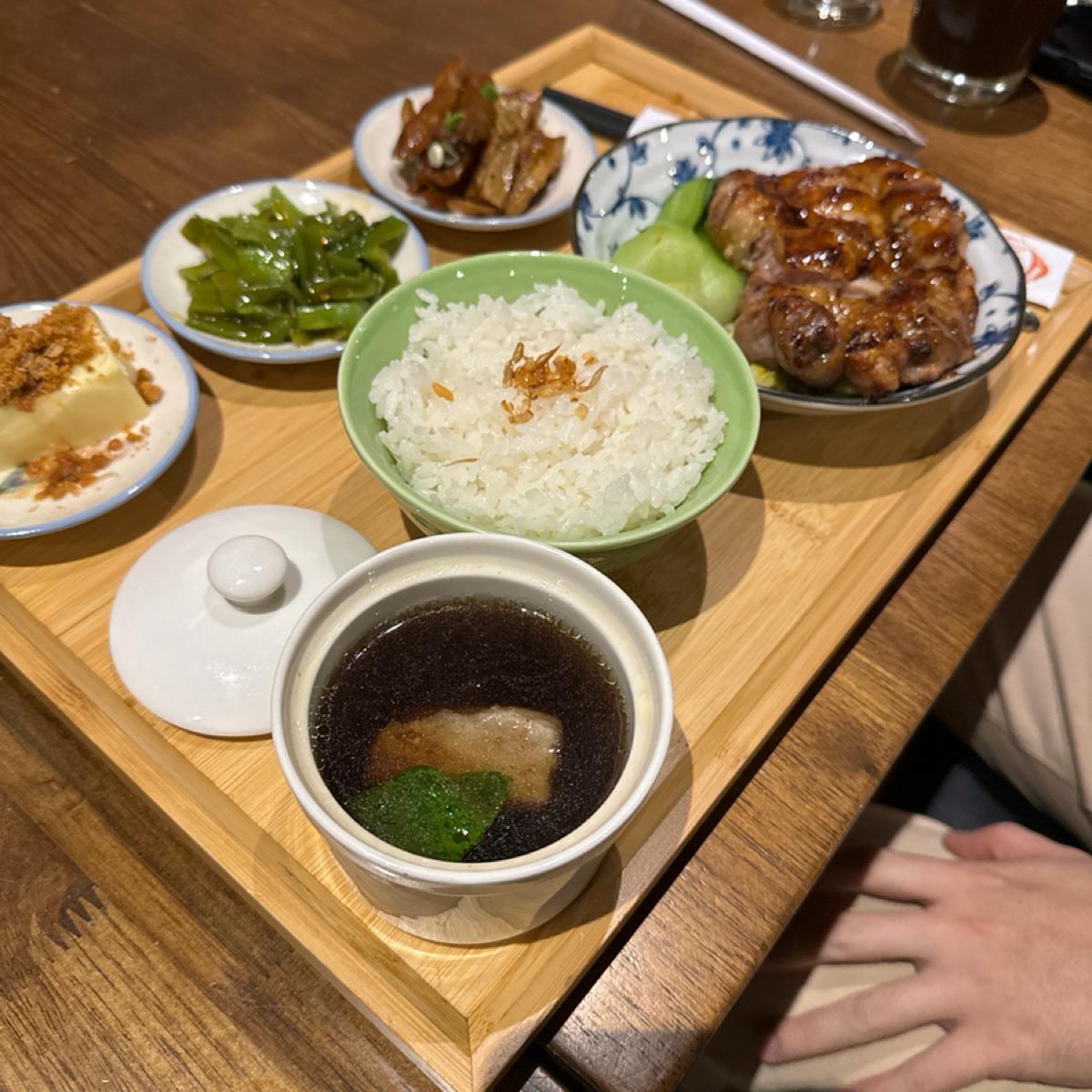 ・今日のおかずは鶏足の煮込み、卵豆腐、わかめなどでどれも大満足です。
