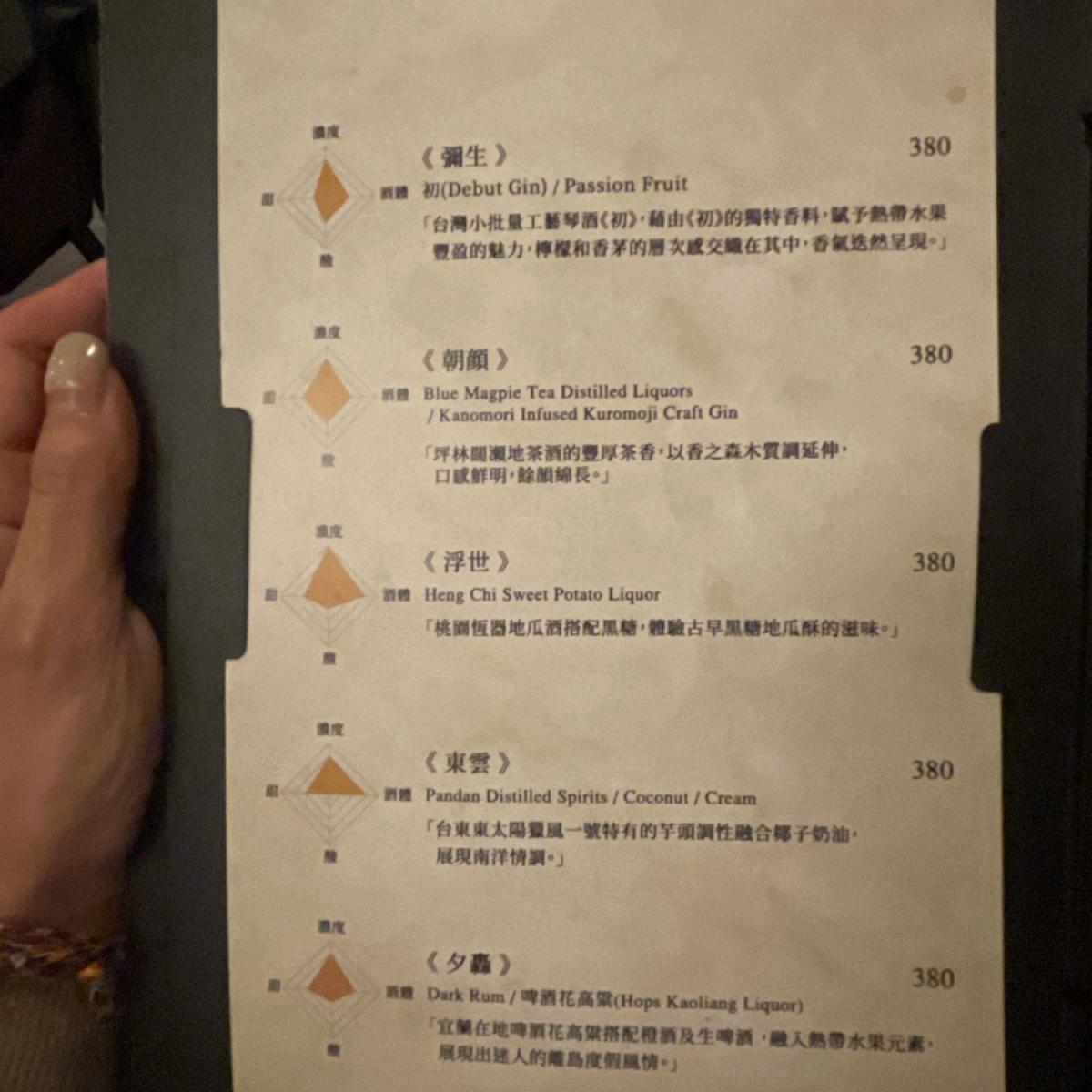今日は「吉春」(李山茶酒/柚子酒/六吟酒)$400、「翠雨」(白花ジャスミン/国産柚子酒/蜂蜜金柑)$380を注文しました。