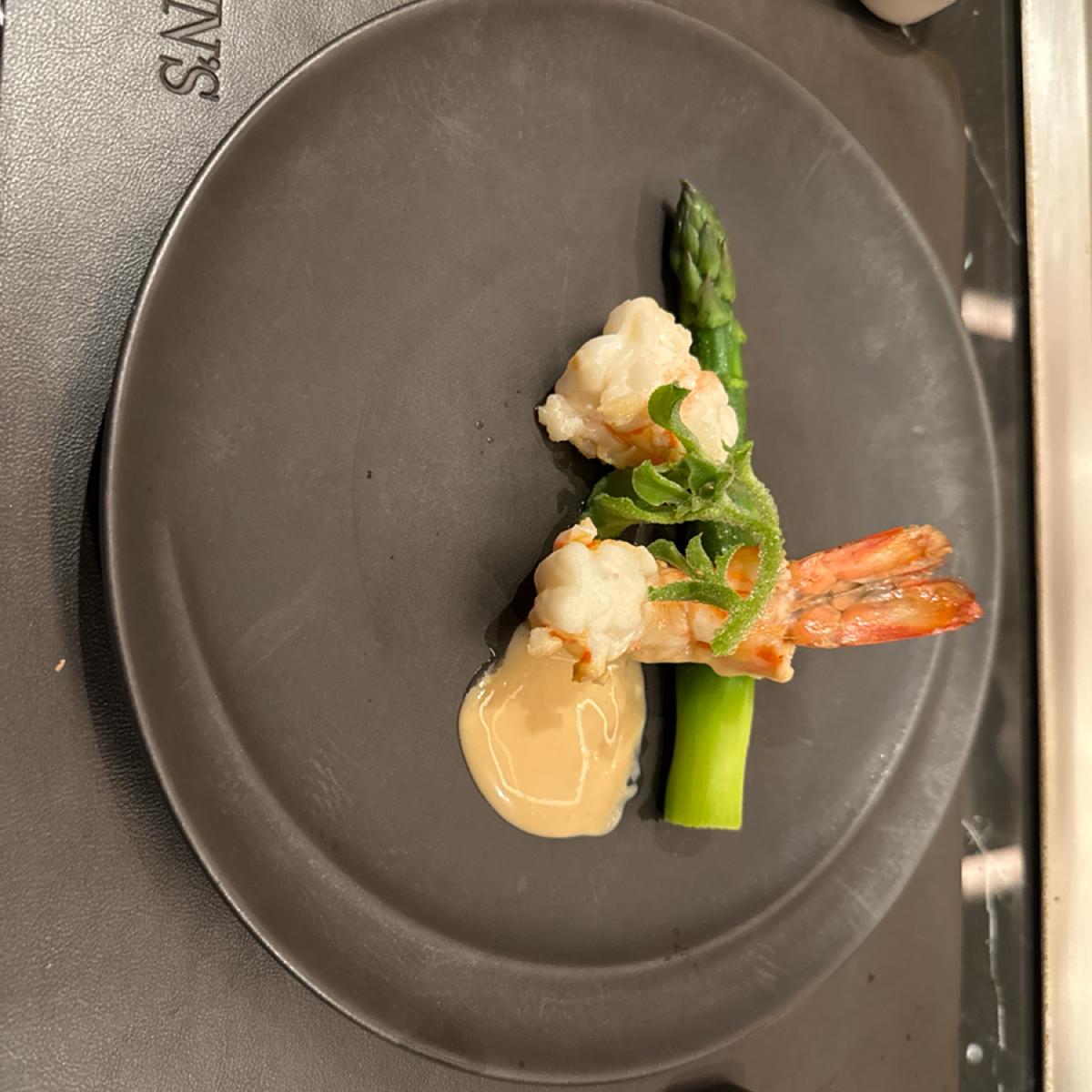 エビは標準的でしたが、アスパラガスは少し辛い感じがしました(それとも実際にはハニーマスタードソースのせいかもしれません)。