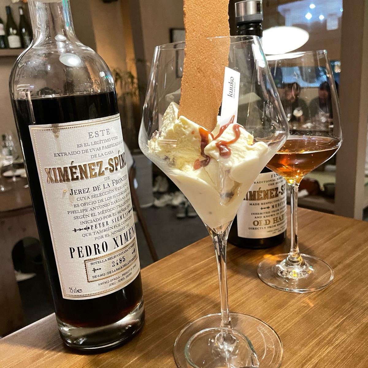 👉デザートセット 赤ワイン無花果アイスカップ / 甘いシェリー酒$500