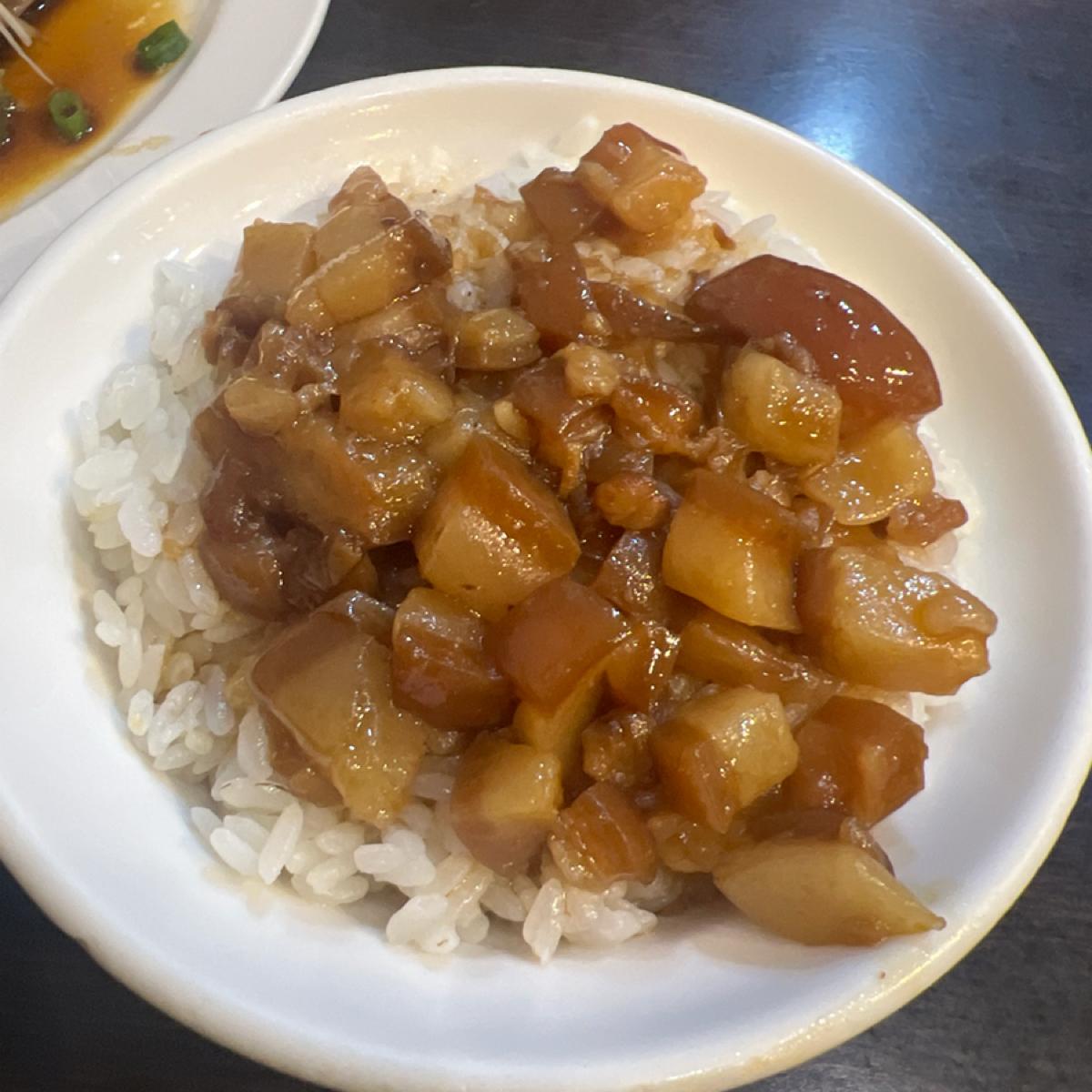 ルーローファンは南部風の味付けで、少し甘めで、脂身が多く、コラーゲンが豊富で口の中でとろける食感が私のお気に入り。スペアリブスープの肉は大きくて柔らかく、大根はちょうど良く煮込まれていて、スープはすっきりとして少し甘みがあった;カキスープは生姜の千切りが味を引き立てていて、カキはかなり新鮮で、スープは鮮やかで甘みがあり、油っぽくなかった。煮魚腹は中程度の評価で、魚の生臭さはないが、味は普通で、一般的なレベルと言える。