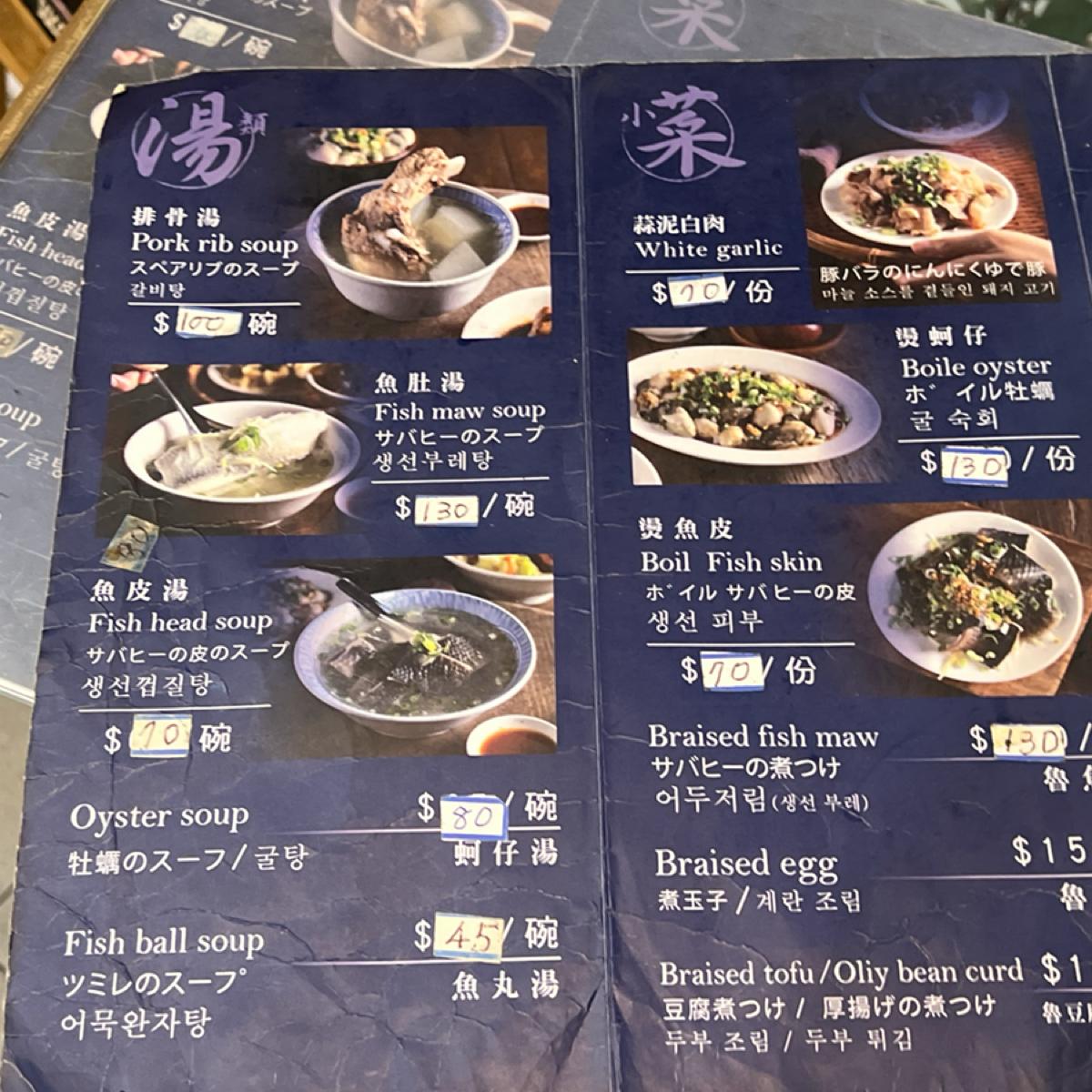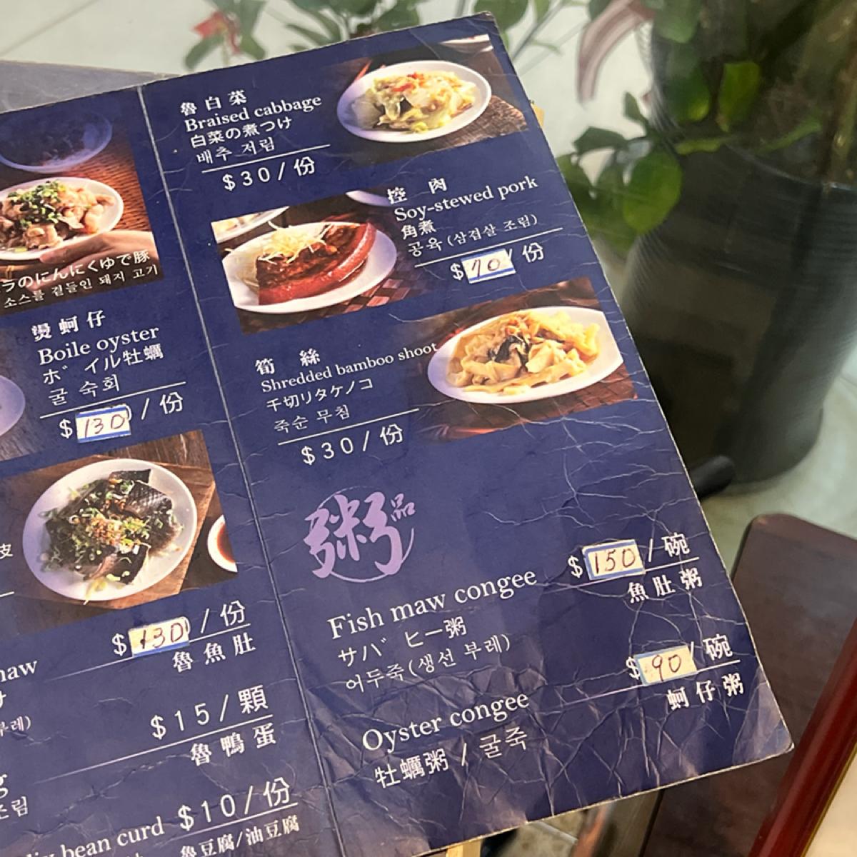 その日は小王の煮瓜を食べた後、隣の阿義のルーローファンを見て、比較することにした。客はそれなりにいたが、隣ほどではなかった。いくつかの料理を注文した:ルーローファン(大)55元、カキスープ80元、スペアリブスープ100元、煮魚腹130元。