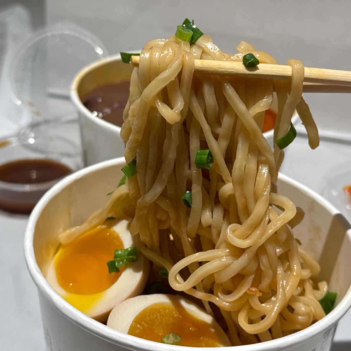 🔹麺は噛みごたえがあり、麻辣スープとも絶妙に絡み、とても香ばしいです。もし辛さが足りなければ、自分で辣油を追加できます。さらに、半熟卵が二つ付いていて、本当に美味しいです!