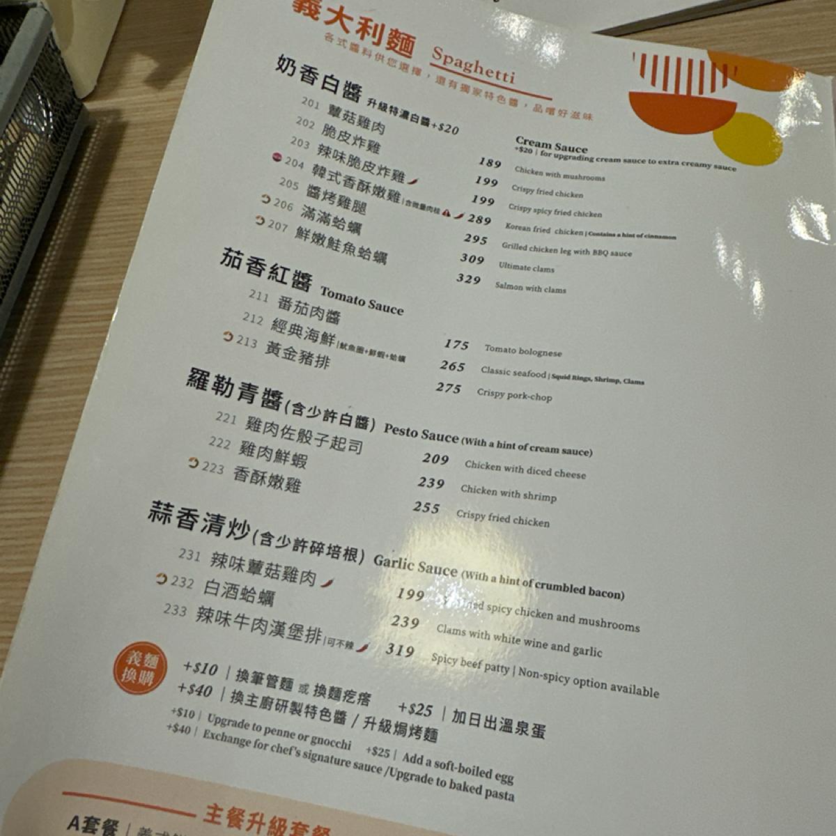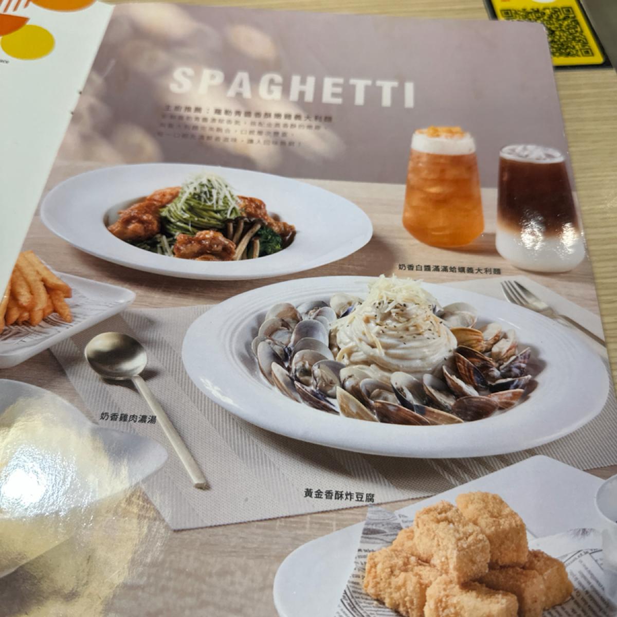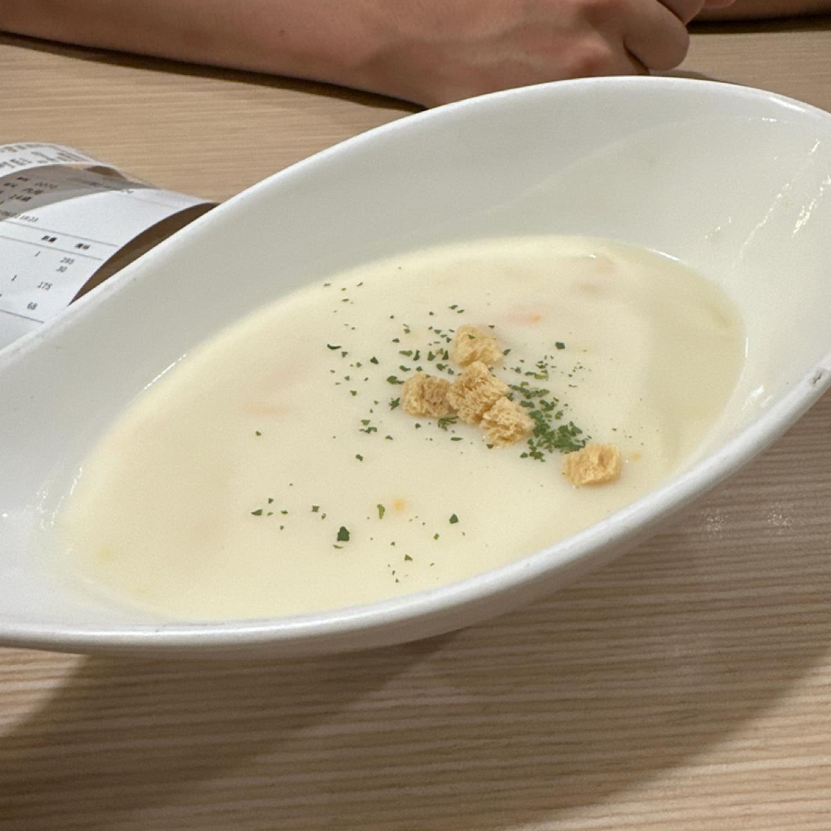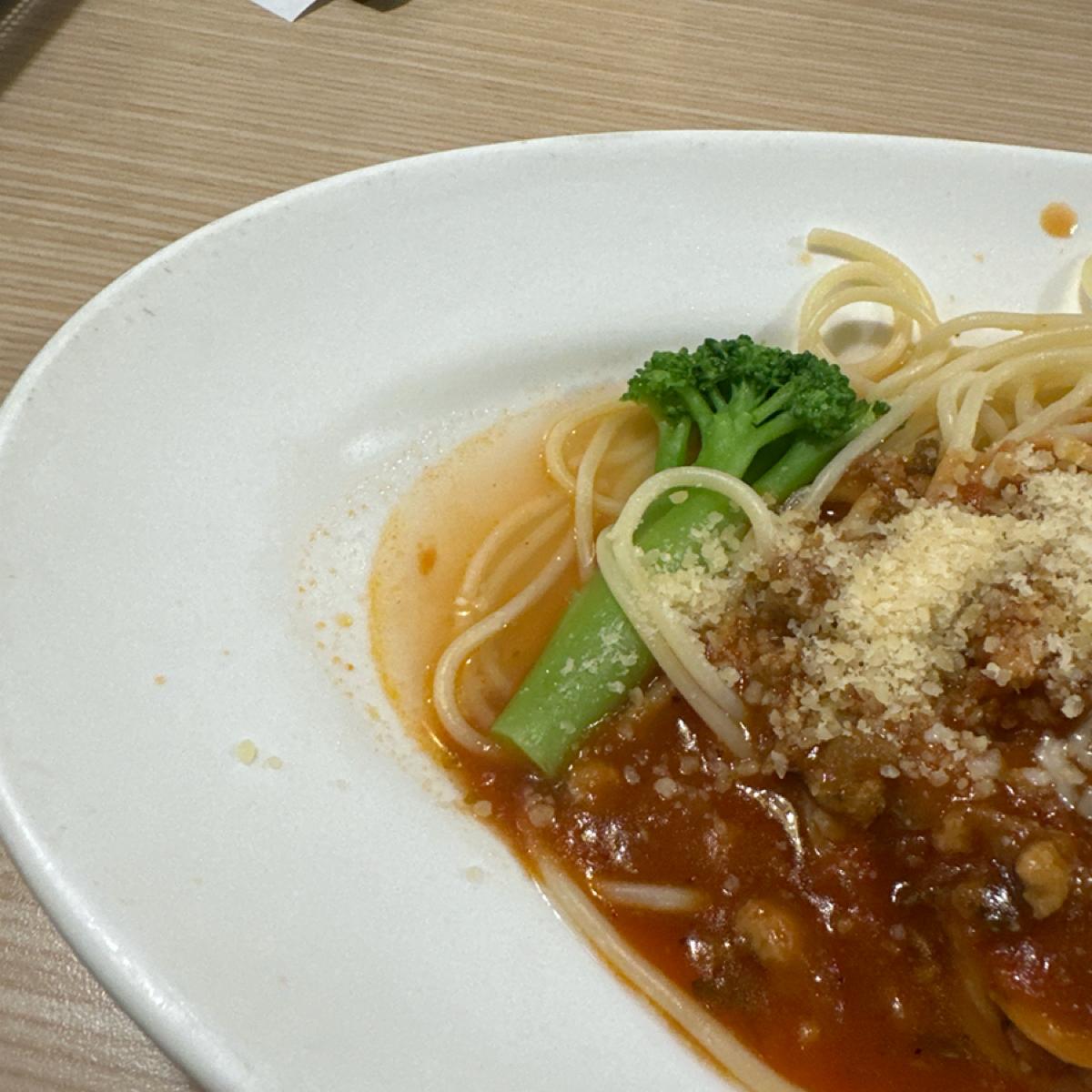 私たちはトマトミートソースパスタ、リゾット、クリームスープを注文した。
