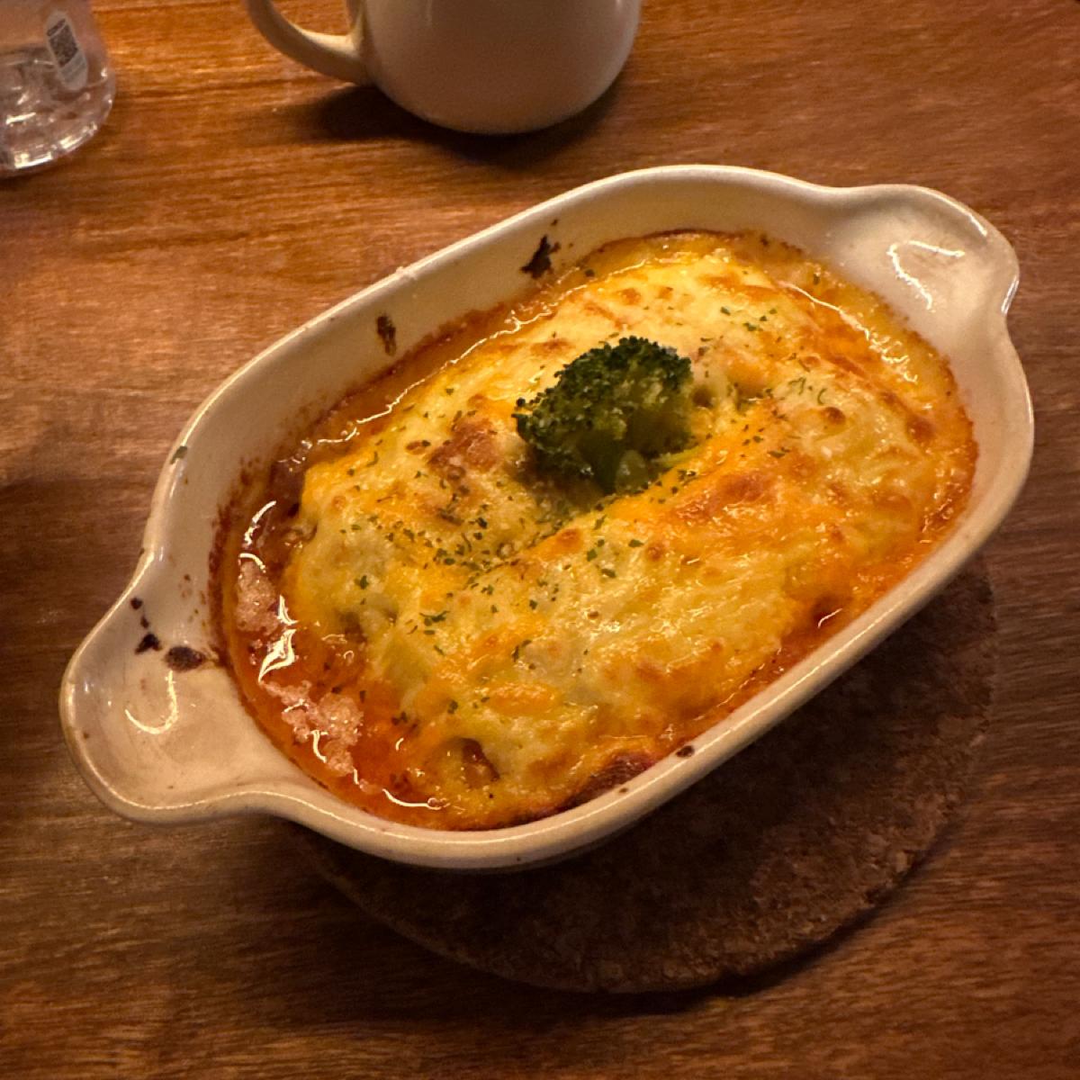 味は香ばしく、ホワイトソースとレッドソースを混ぜたような感じで、糸を引いています。ラザニアは何層にも重ねられており、真ん中のトマトミートソースは本物の素材で作られており、肉がたっぷり入っています。野菜もトッピングされており、チーズの量もちょうど良いので食べていて飽きません。