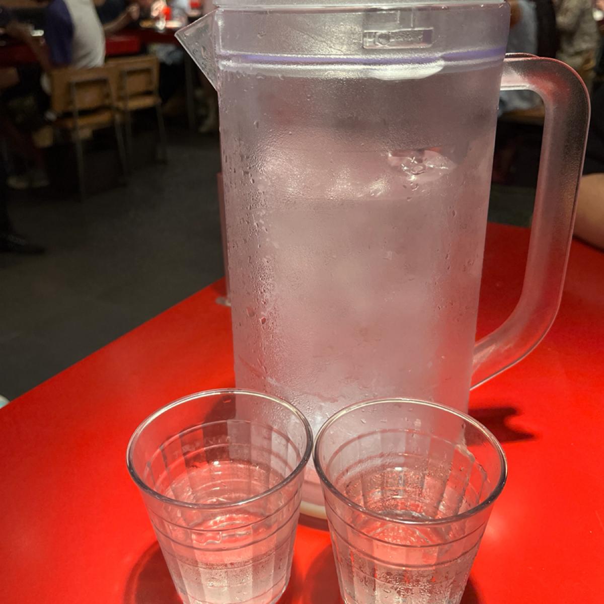 各テーブルには、ご自身でご使用いただける氷水のボトルが用意されています。