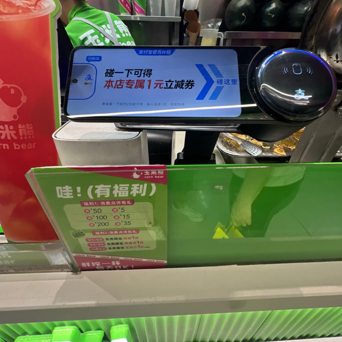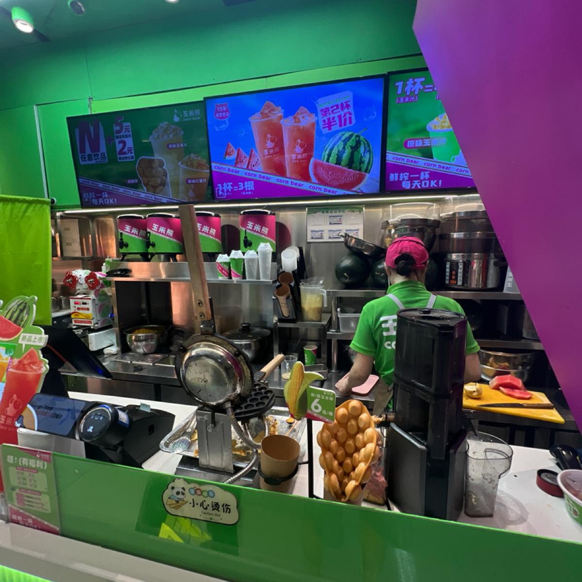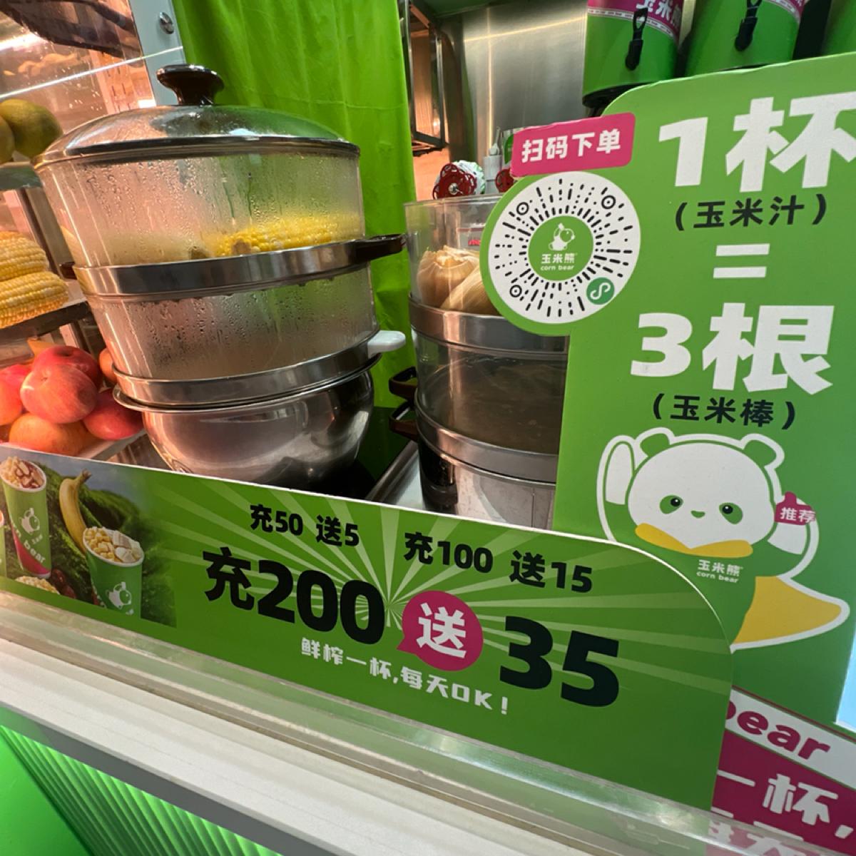 支払いはチャージ式でできるのも初めて見ました。全体的に良い感じで、初めての今回はもちろん玉米ジュースを飲みました。一杯に3本の玉米を使っていて、飲んでみるとやはり香ばしく濃厚で、とても特別な体験でした。