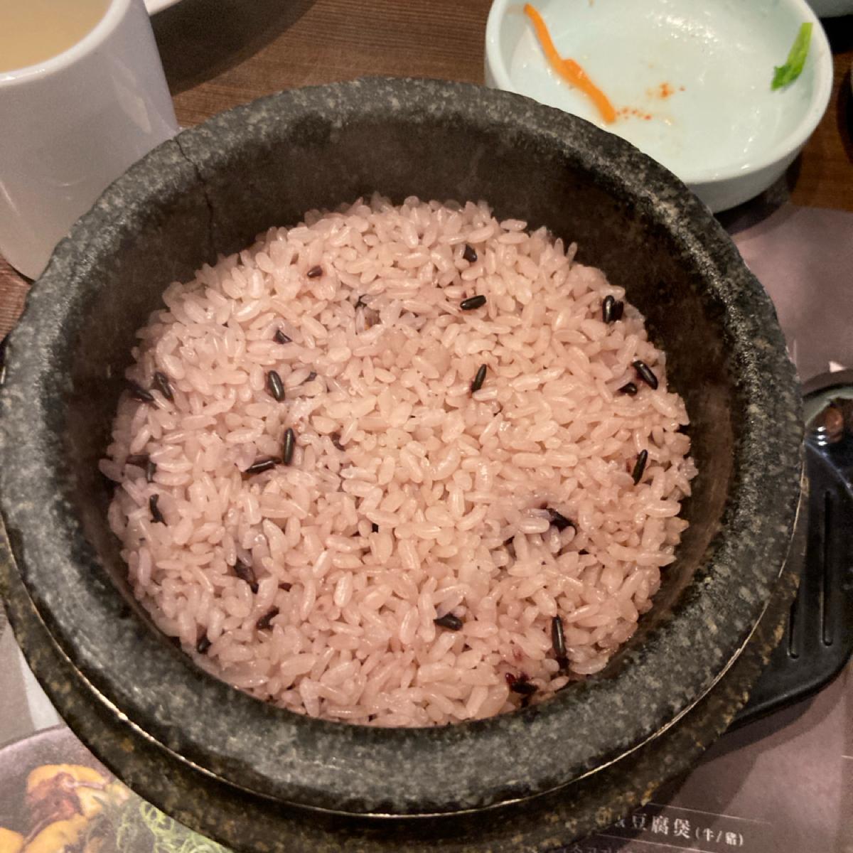 キムチ豚肉鍋には豆腐がたくさん入っていて、辛口を選びましたがそれほど辛くなく、辛さは調整できました。付属の石鍋ご飯も多く、下の部分は鍋の焦げが香ばしかったです。
