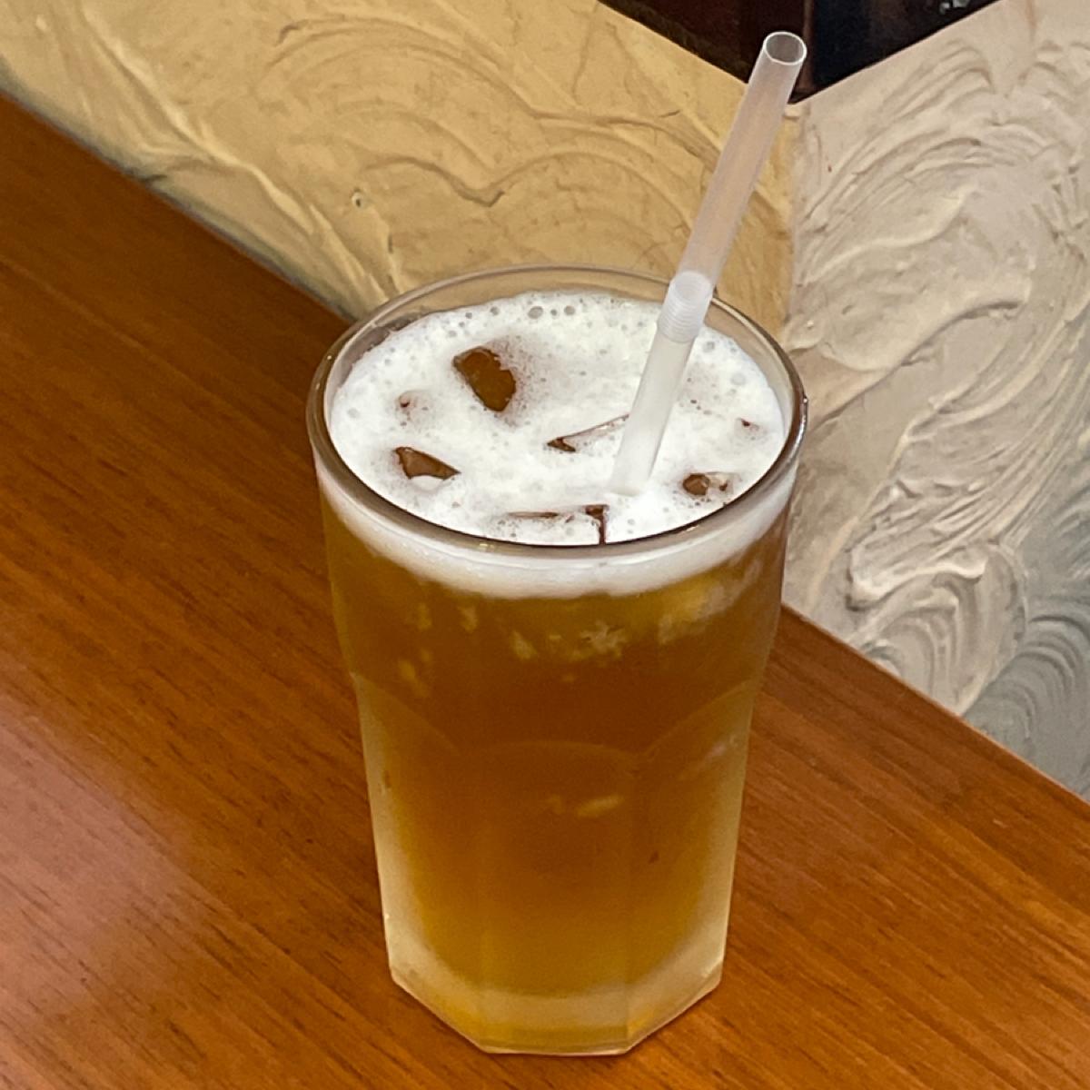 🔹飲み物:無糖アイス緑茶 / 紅茶を選び、特別に氷を入れて泡立てています
