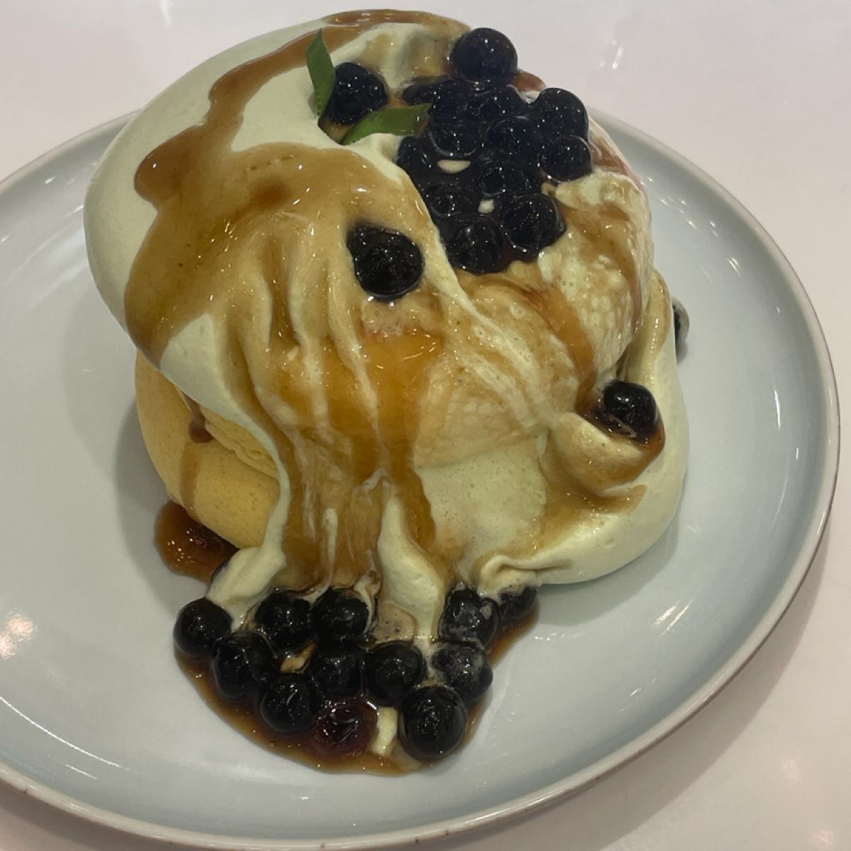 スフレはとても柔らかく口の中でとろけます。上のソースはおそらく斑入りの葉で作られていると思いますが、個人的には少し苦い後味があると思いますが、付属の黒糖パールによって相殺されます。とても美味しいです、私の友達はみんなこの料理が好きです。