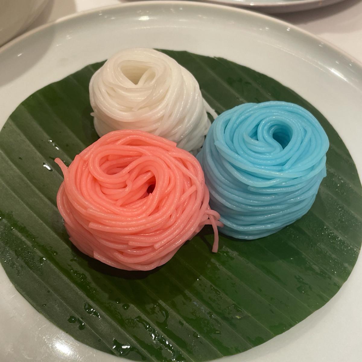 写真を撮るのにとても適した料理で、白のほかにピンクとブルーもありました。しかし、グリーンカレーは少し辛すぎるように感じました。食べてみると牛バラ肉も少し硬めで、思ったよりも柔らかく柔らかい食感でした。