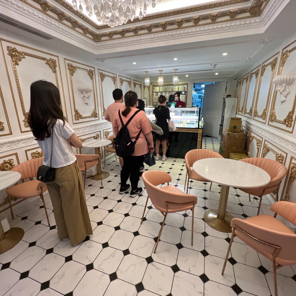 人気のフレンチデザート店で、ネットでの人気も高いお店です。環境は清潔で快適、明るく、とても高級感があります。店内にはお茶や軽食もあり、質の高いデザート店のようです。ただし、生クリームロールやクッキー類は、購入するほど安くなるため、3個または4個のセットが特価という感じです。他のケーキ類は精巧で高級ですが、不定期でイベントや割引もあります。全体的にとても気に入っています。