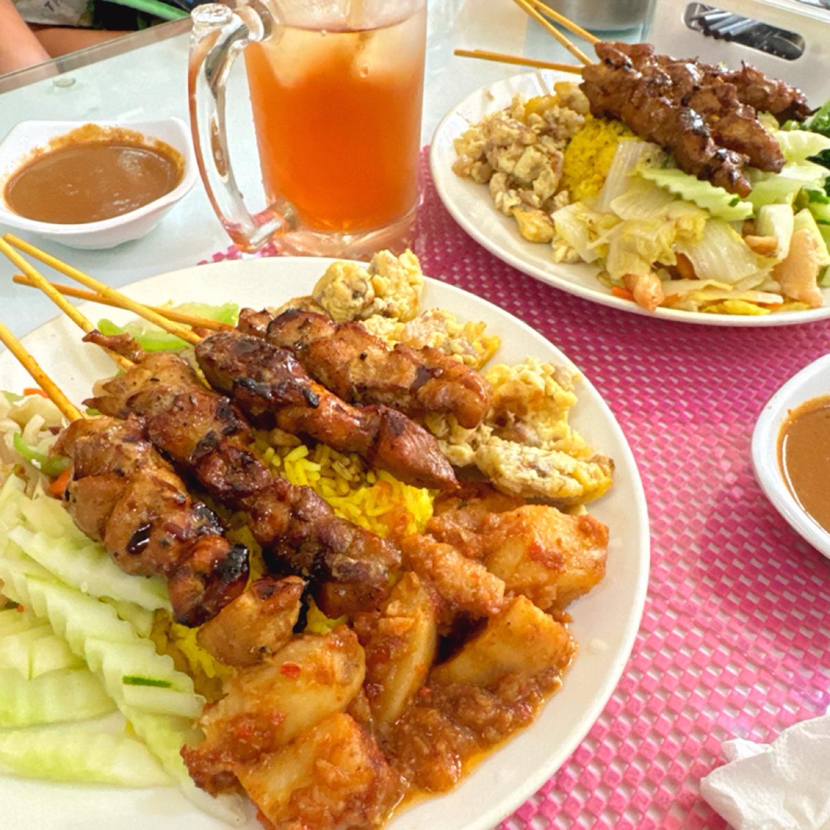 ターメリックご飯と白ご飯の選択肢があります👍テーブルに出された瞬間、炭の香ばしい香りが広がり、外はパリパリ、中は驚くほど柔らかい鶏肉が特徴です。鶏むね肉がこれほど柔らかいとは思いませんでした😋続いて、サテソースが濃厚なピーナッツの香りを運んできました。なんとサテソースの中に砕いたピーナッツも入っていて、別の食感が楽しめます🤤辛いのが好きな方のために、2種類の唐辛子も用意されています🌶️一つはエビ醤が入ったもので、もう一つは入っていないものです🙌🏻大人の私としては全て試したいです🤣付け合わせは家庭的な味です👌