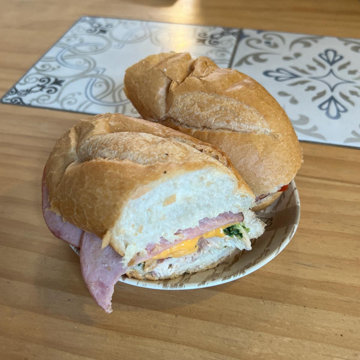 パンはハードフランスパンで、非常に歯ごたえがあり、パンっぽく、非常に平均的です。
