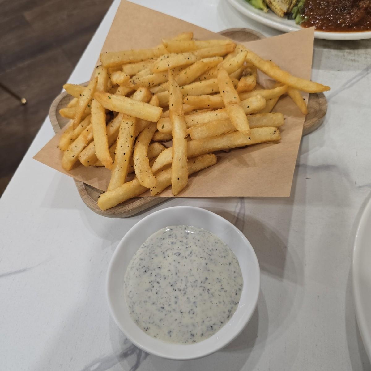 最初は普通のフライドポテトにトリュフパウダーを振りかけたものだと思っていましたが、実際はトリュフソースで本当に驚きました。
