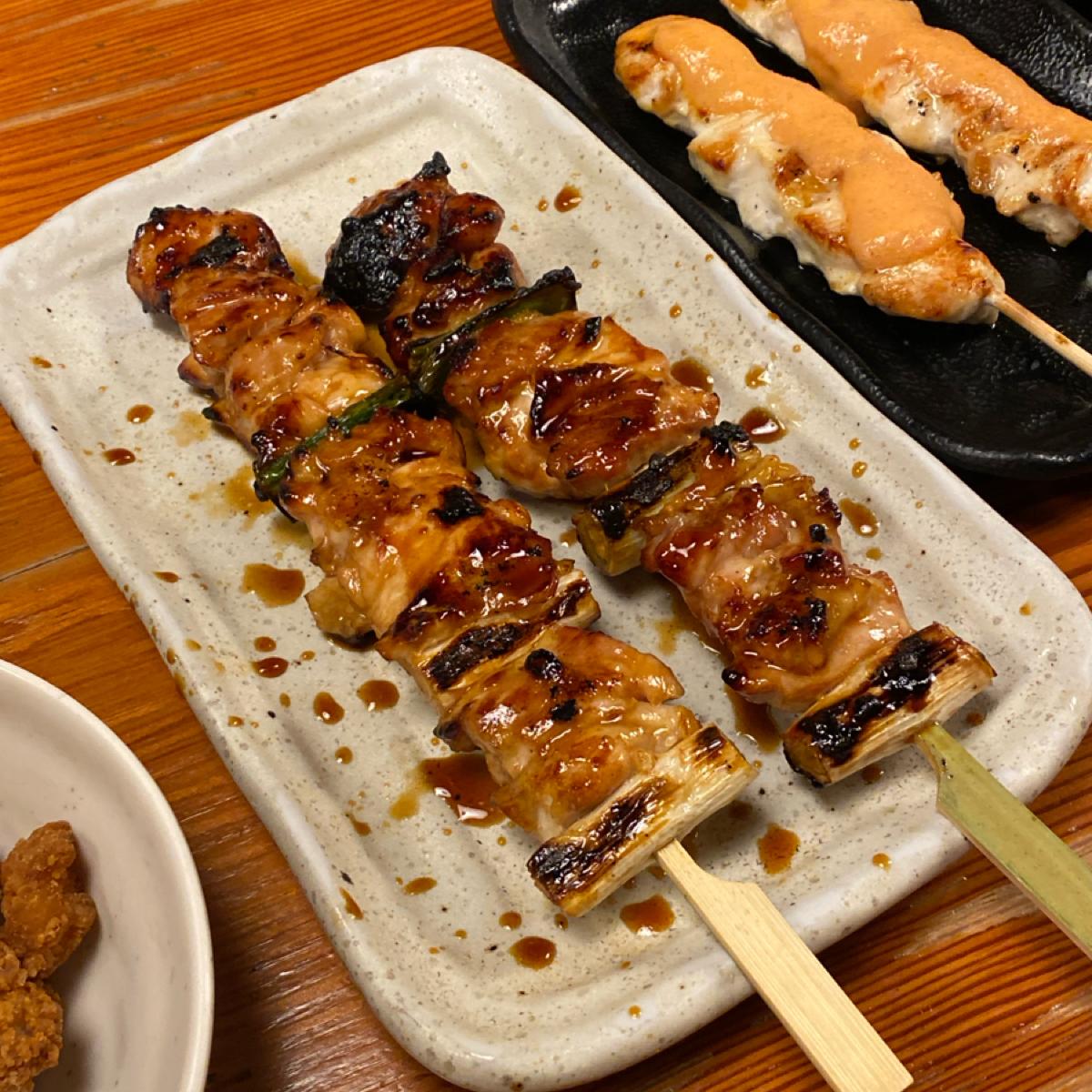 基本的に串焼きは全て均一価格で¥370、台湾ドルにして約$82(0.22のレート)です。期間限定のものは少し小さめですが、タレ焼き・塩焼きはどれも大きめ(サイズは台湾の串焼きの2倍くらい)で、1皿に2本ついてきます。味は中規模と感じられ、特に濃いわけではないですが、食べ進めるうちに同じような味に感じることもあり、後半になると少し疲れました😂すべてタンパク質なのでかなり満腹になり、幸運にも無酒精のカシスソーダを頼んでかなり美味しかったです!無料のキャベツが口直しになり、小さいキュウリの味付けは普通で、鶏軟骨はかなり美味しかったです。