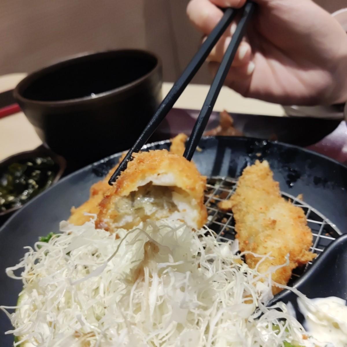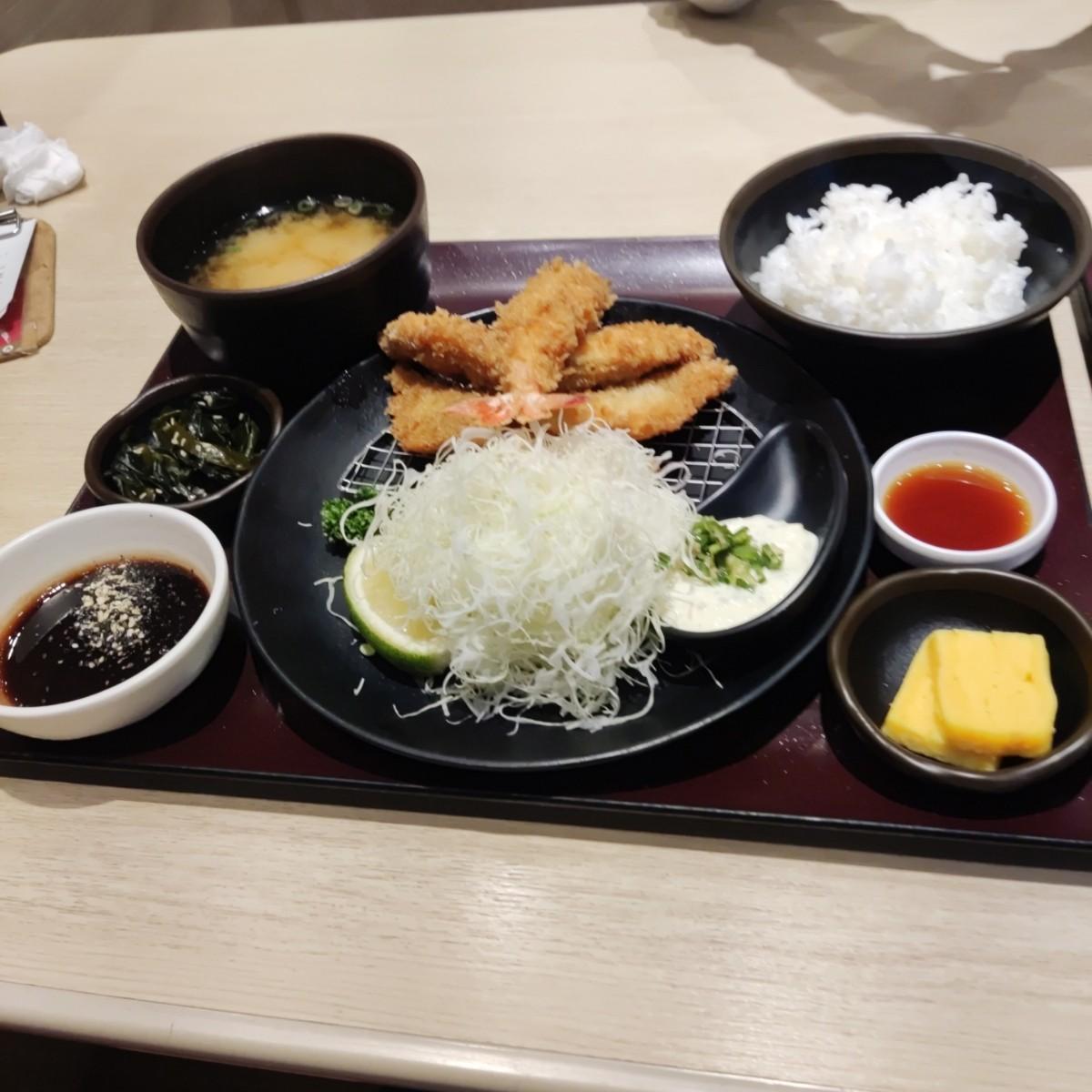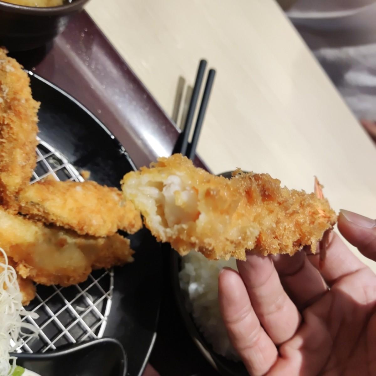 また、私は季節の魚フライとエビご飯を選びました。小麦粉の衣は厚すぎず、魚の身はパサつきすぎず、大丈夫でした。