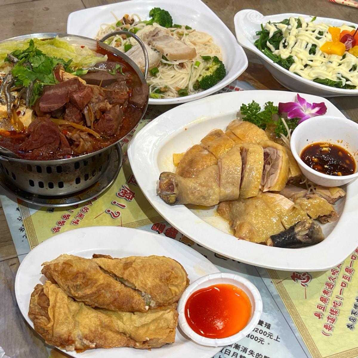 びっくりするほど具材が多く、牛すじのような牛肉、鴨の血、米の血餅、臭豆腐、干物、パクチーなどが入ったスープがとても美味しくて、絶品です。少し辛い。