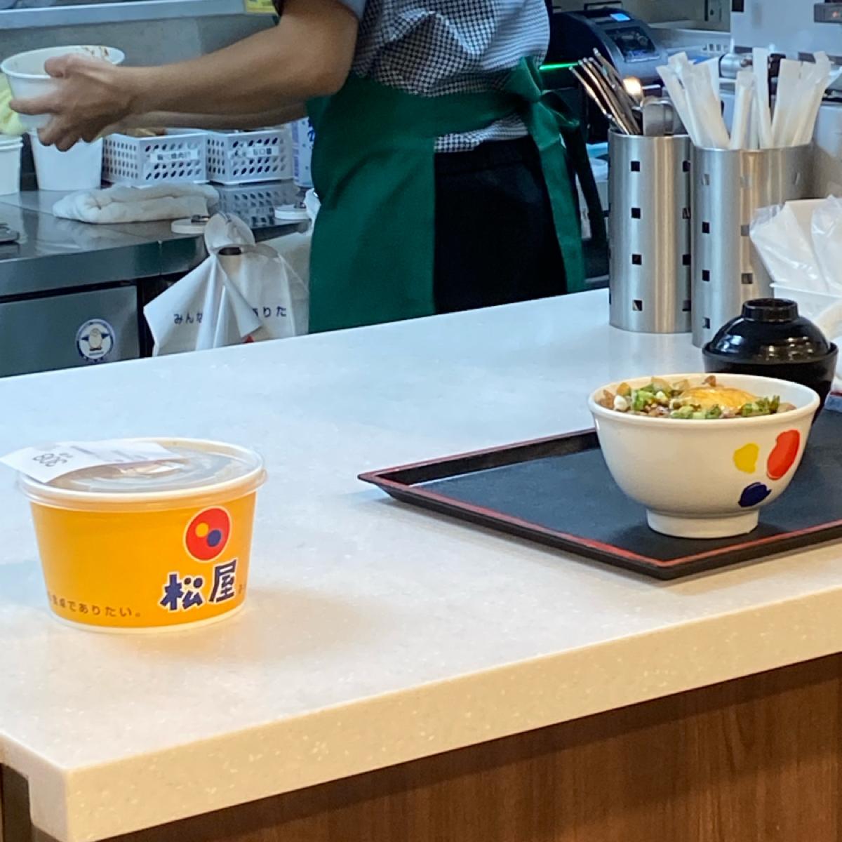 松屋は何度も食べたことがあり、ちょうどこの近くに来たので、時間が少し遅くて何を食べるか分からなかったので、持ち帰りをしました。彼らは23時間営業していて、基本的に午前4時から5時までの間だけ休業しています。突然食事時間以外でお腹が空いている人にはとても便利です。