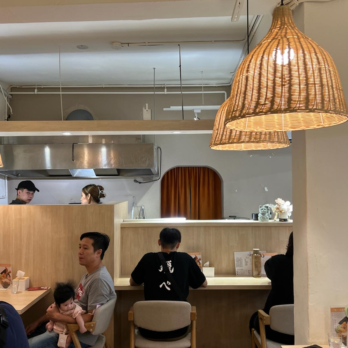 店内の座席数は多くないですが、カウンター席、2人用テーブルがいくつかと親子向けのスペースがあります。約16人ほど収容可能です。今回はGoogleの評価が4.9点だったので立ち寄ってみました。すでに7時半ですが満席で、数組が入ってきたばかりの客でした。食事が決まったら先に注文し待つことができます。店員によると料理の提供まで10〜15分かかるとのことです。