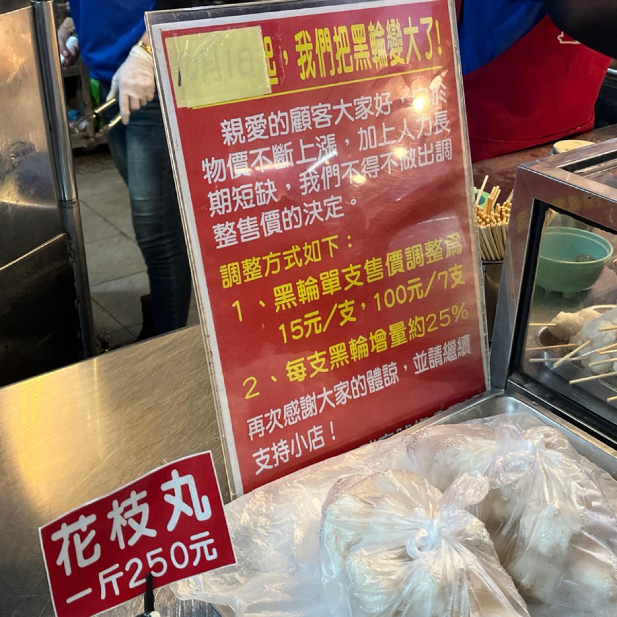 旗魚黑輪 端上來時外皮微酥、金黃漂亮,散發淡淡的旗魚香。咬下去外層薄脆,內餡卻軟嫩帶彈性,魚漿的比例調得剛好,裡面有放切塊的水煮蛋,旗魚香氣不算特別濃烈,但是那種吃完後還會想再咬一口的耐吃滋味。搭上華僑市場常見的甜醬油膏或些許哇沙米,就有更多層次。再來的花枝丸剛炸起來外層微脆,裡面口感 Q 彈又帶汁,裡面也真的吃得到花枝塊。