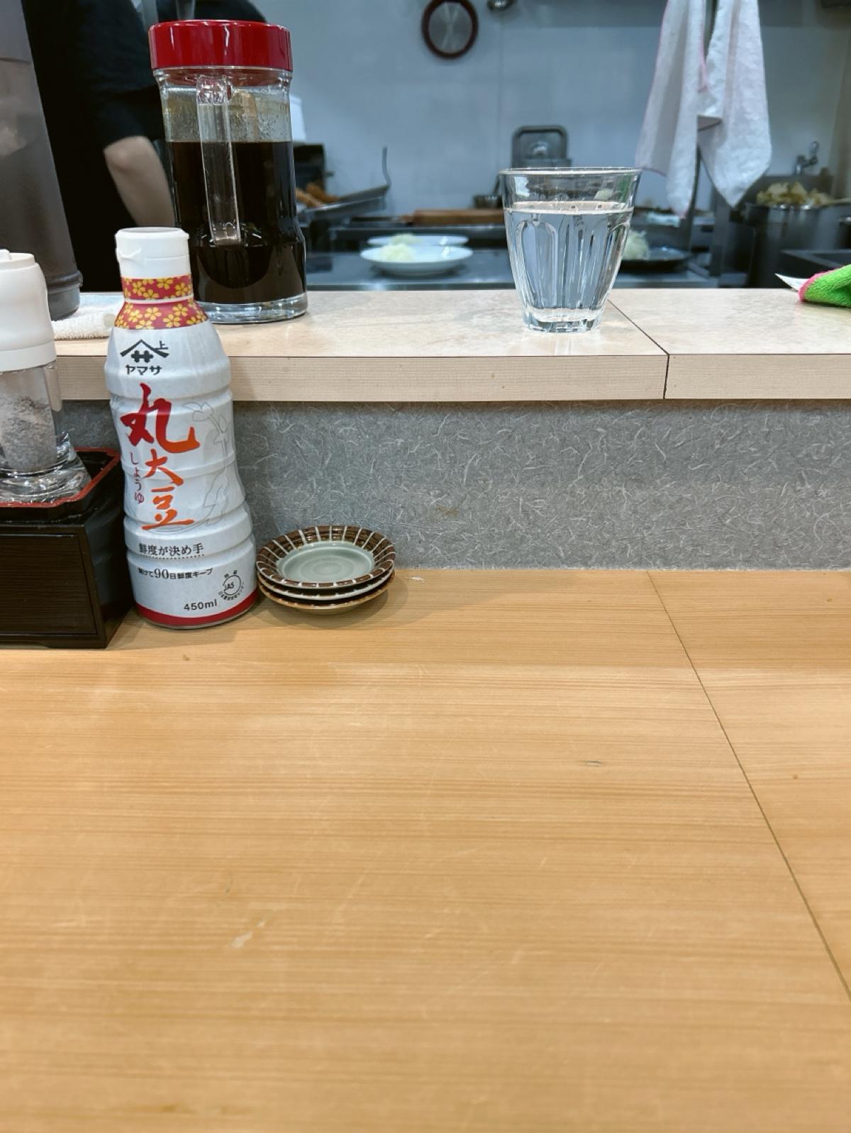 駅からすぐのビル内の1Fに位置し、平日でも10名弱の待ちが出来る、カウンターが8席のみで、先に食券購入し店員にチケットを渡し列で並び待つ。通路に面しているから夏とかは暑そう。入店までに20分くらいかかる。