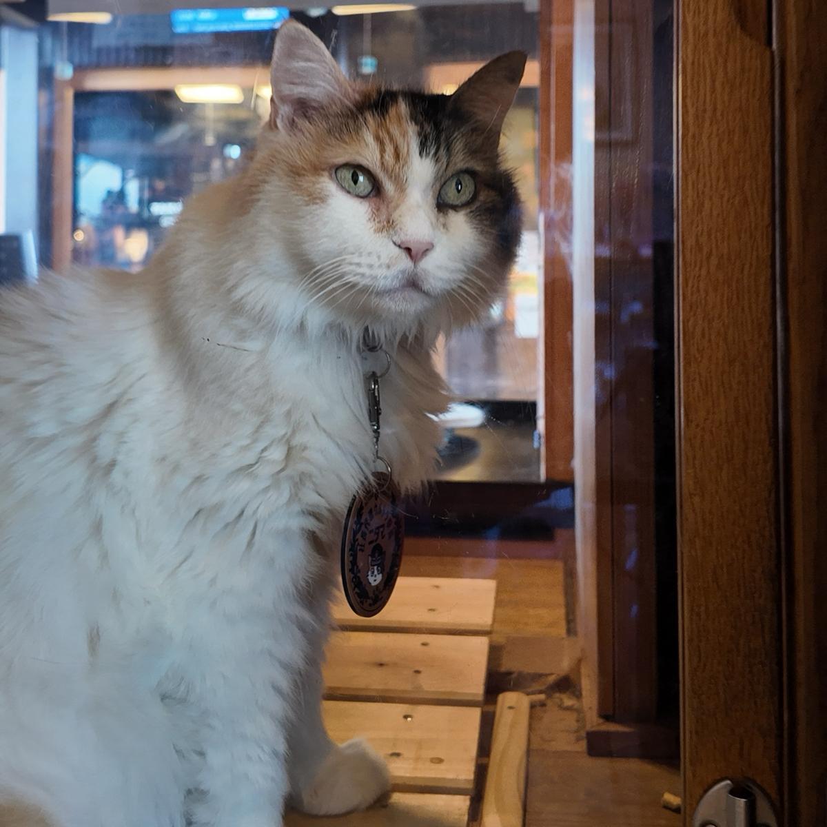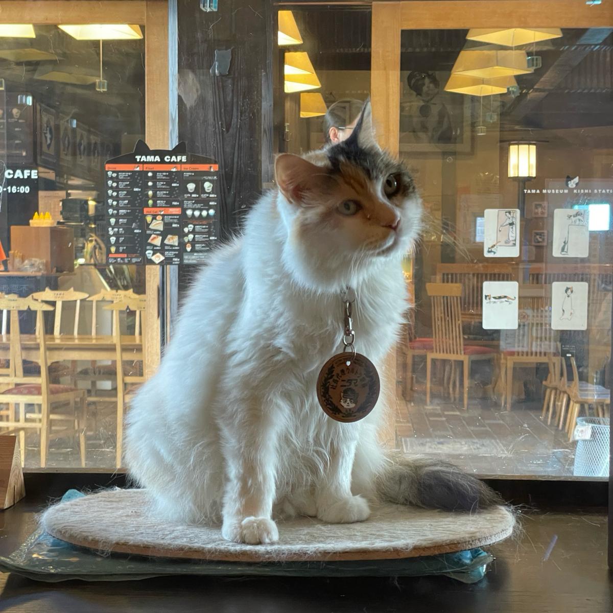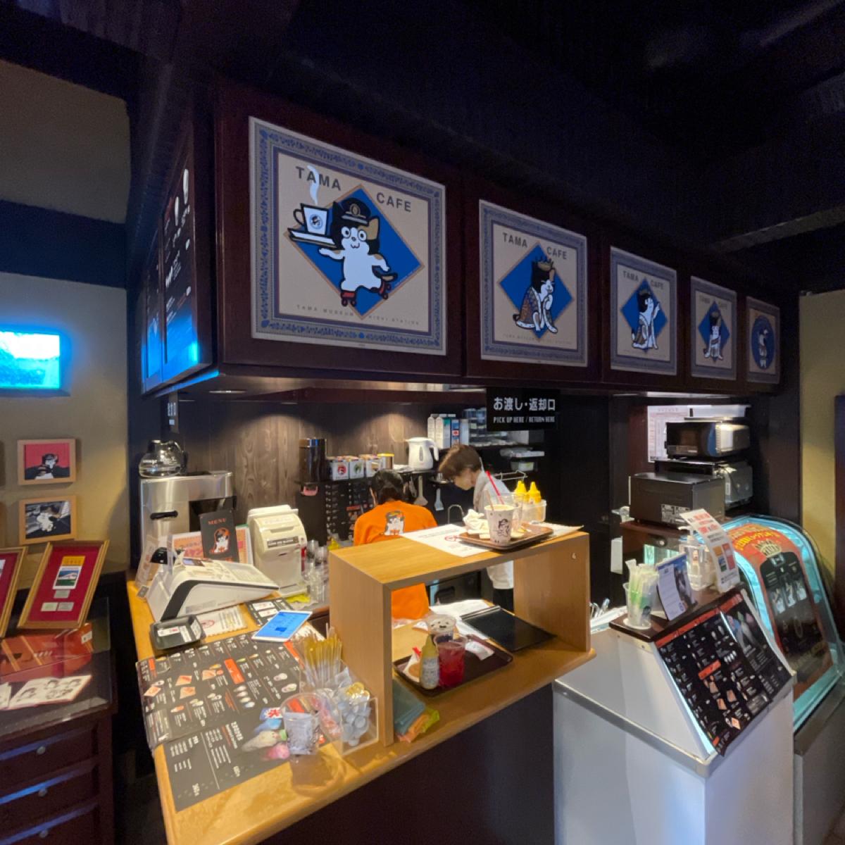 日本和歌山電鐵貴志駅 - このカフェは「小玉カフェ」と呼ばれ、駅の隣にあり、2010年に改装される際に新たに設けられました。駅の屋根は猫の顔と猫の耳の形をしています。「小玉」という名前は、駅に「猫の駅長」がいることに由来しており、その名前は小玉です!(初代の小玉は2015年に亡くなり、現在は「二代玉」が貴志駅の猫の駅長を継いでいますXD 詳細はこの物語をGoogleで調べてみてください。)今日は「二代玉」が窓越しにだらりと座っているのを見ることができてとてもラッキーでした。猫の駅長の目の前にあるのがこのカフェで、次の帰りの列車を待つ間、特別に猫の飲み物を注文しました: