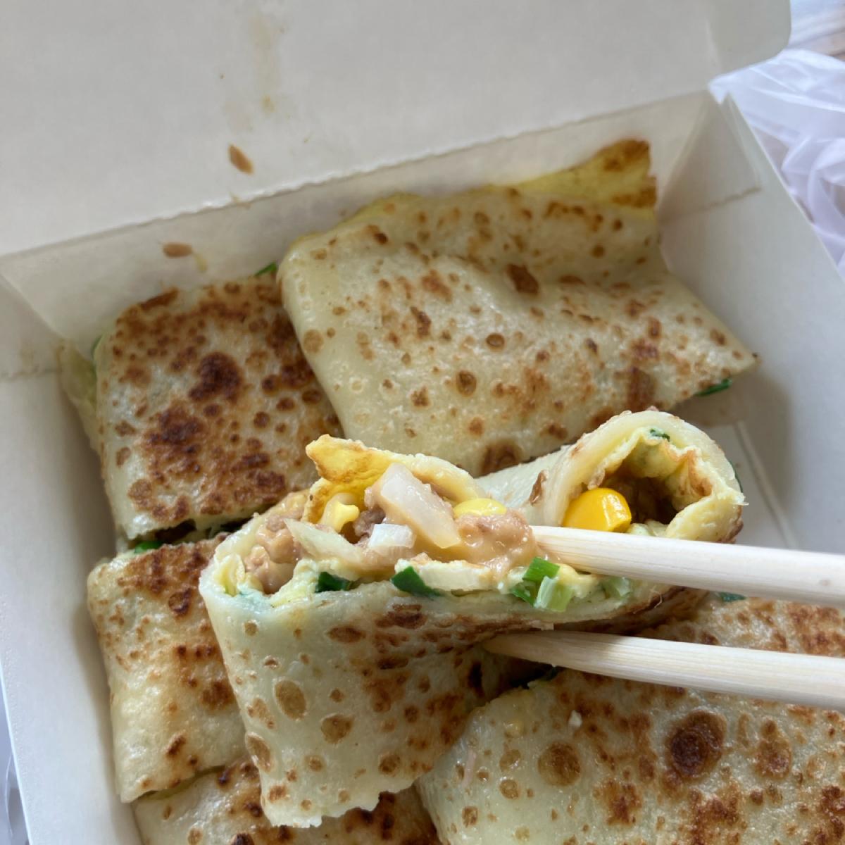 残念なのは持ち帰りしかできないこと😭でも、持ち帰りでも配達でも、卵パンケーキの生地は水分でべたべたしないので、ぜひ皆さんも試してみてください!