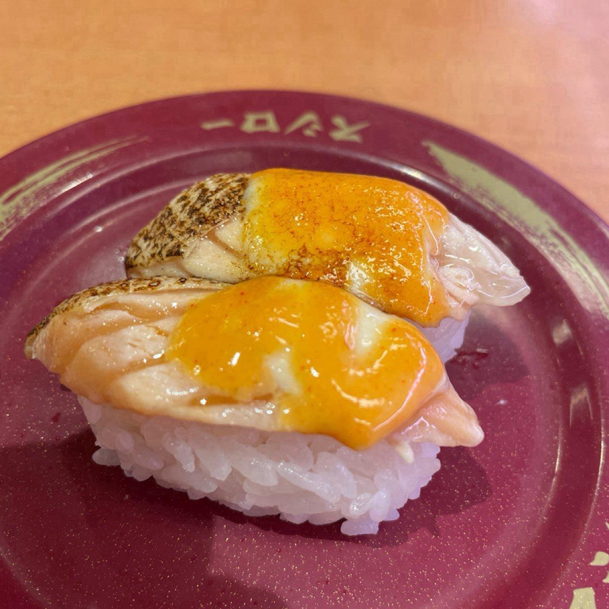 コンベアから皿を外すと自然と手が皿の底に触れてしまい、油っぽさを感じることが多いのですが、その中でもにんにく天にぎり寿司(タレがかかっています)を注文したのは、皿を外すときに。ディナープレートの真下にソースを感じました。