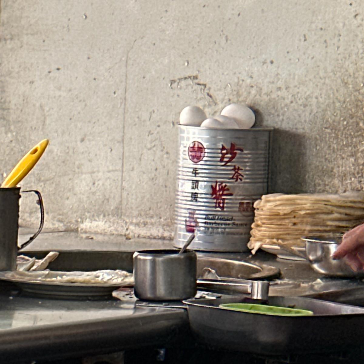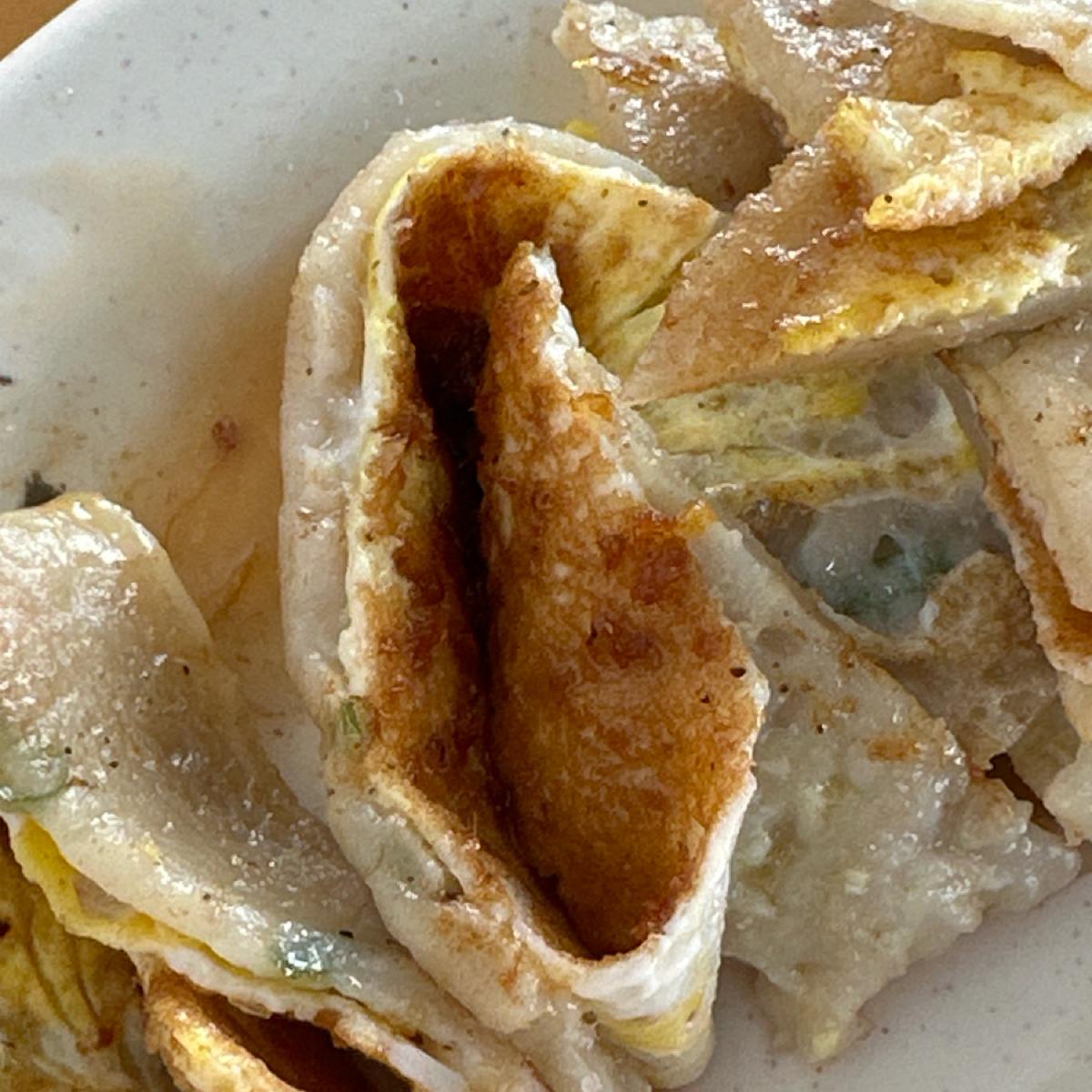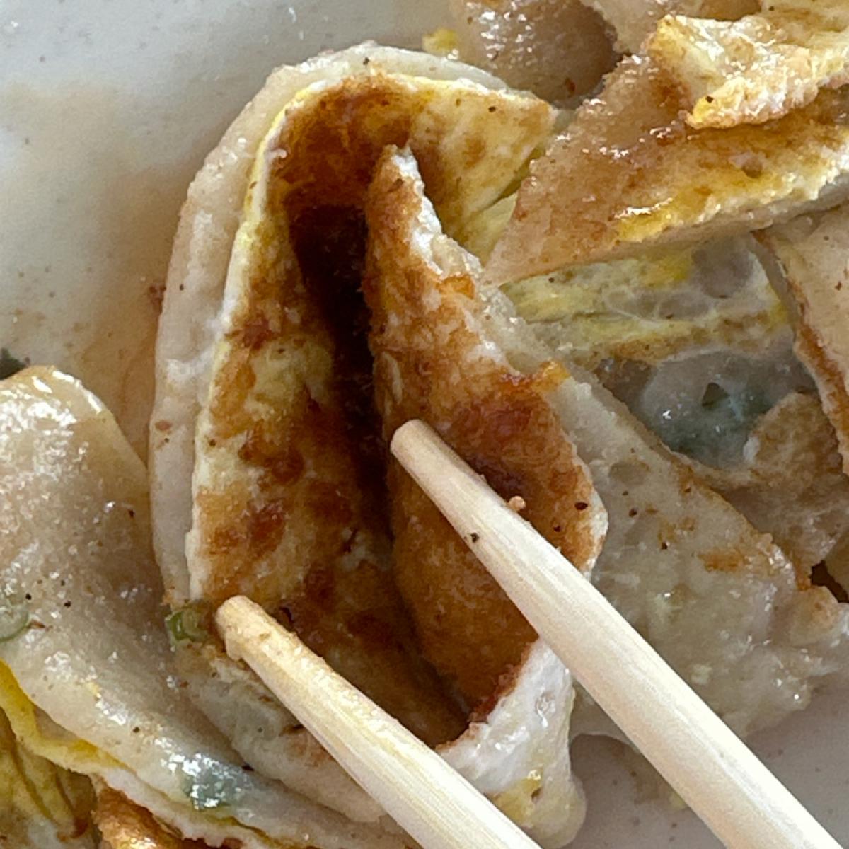 台南米粉の卵餅と乳頭ブランドの砂茶ソースの組み合わせが絶妙です。