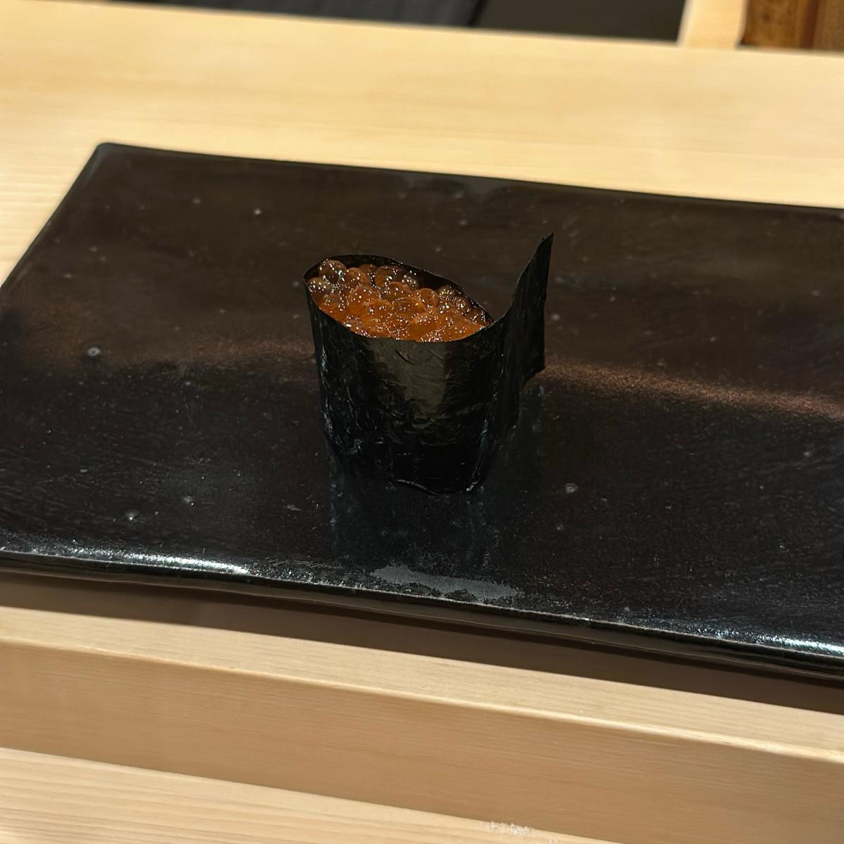 ⦿ サーモンの卵軍艦寿司
