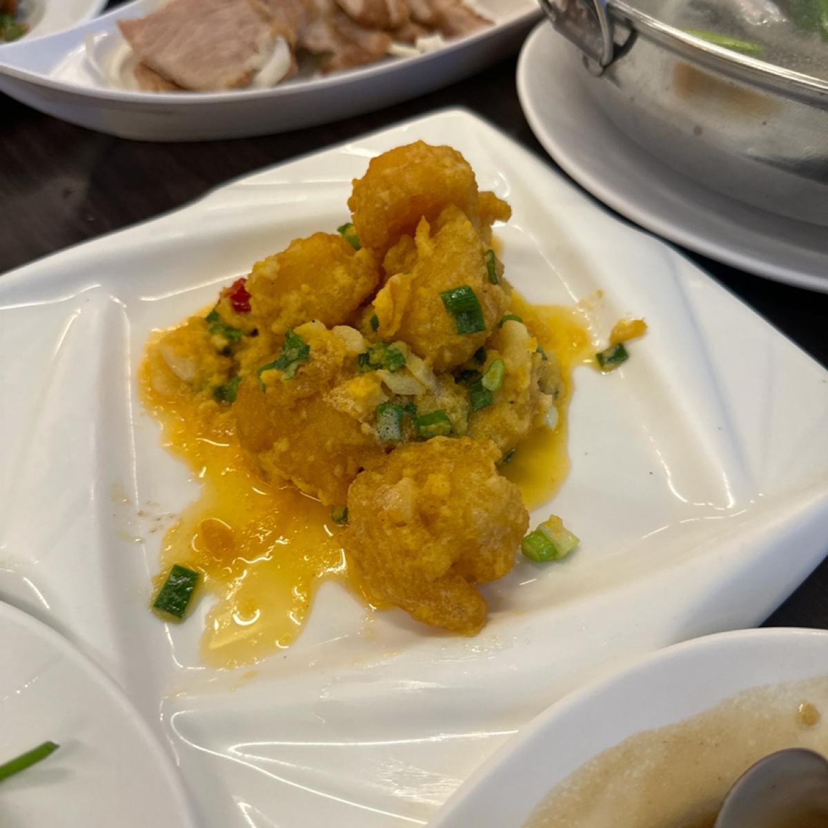 塩漬け卵黄の黄金色の皮と濃いめの塩味がエビの身とよく合いますが、食べる量が少ないと飽きてしまいます。