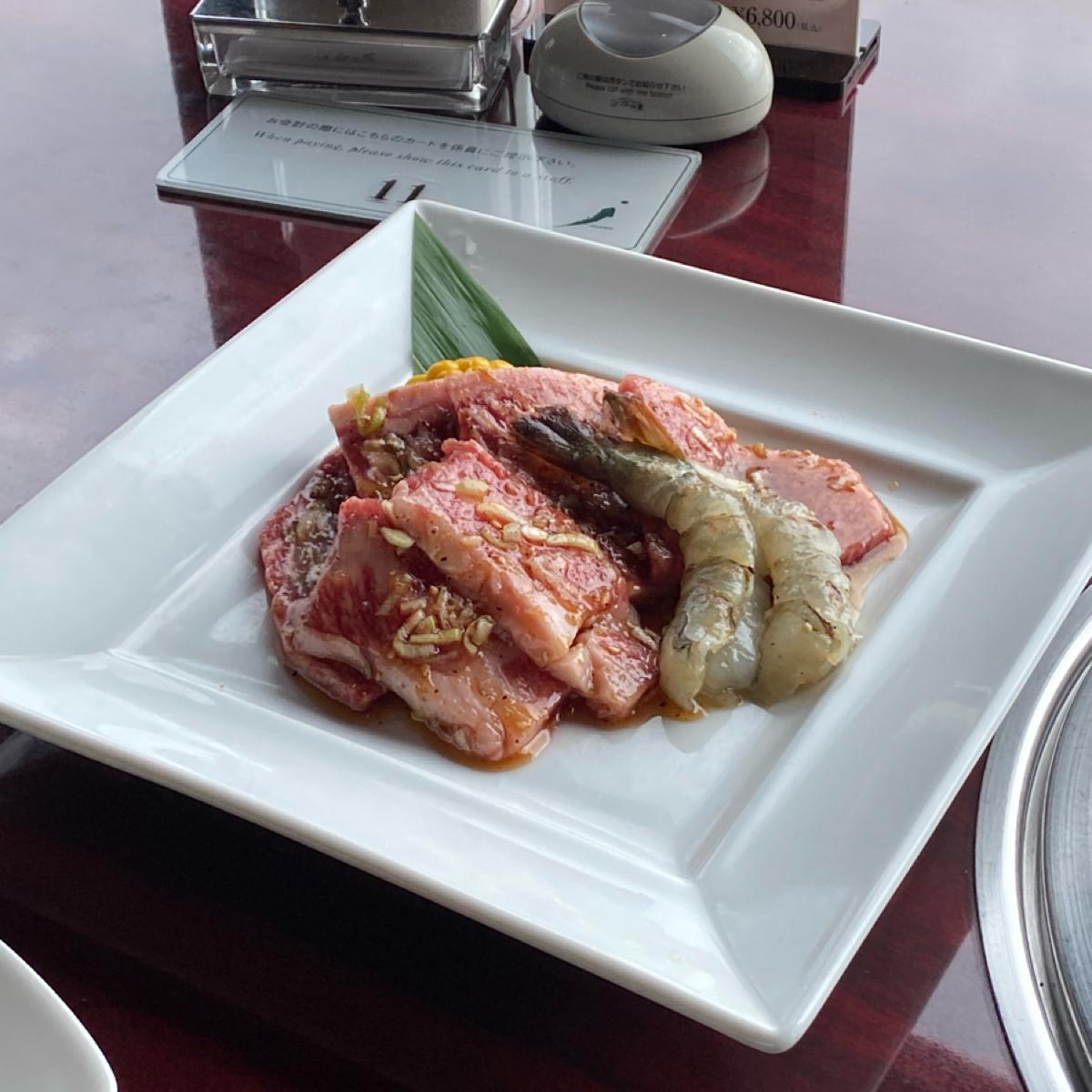 今回日本に来て、あらかじめ予約をした数少ないお店の一つで、実際に多くの素晴らしい焼肉店があると思いますが、今回はこの有名なお店に行ってみたくて、特に押上の東京スカイツリーの近くにあるお店を探しました。30階に位置しており、当日は窓側の席に配置され、背後には屏風があり、少し個室感がありました。
