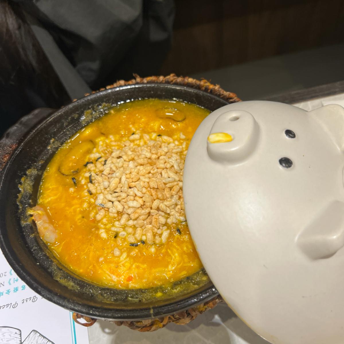 見た目からして半分勝っている、小豚の頭の鍋蓋は非常に目を引きます。蓋を開けると蟹の香りが漂い、中には海老、帆立、蟹肉が入っています。ご飯はしっとりしていて均一に混ざっており、塩味がきいていてもあっさりとしていて、米の香りが口当たりを良くしていて、熱々で食べると本当においしいです。
