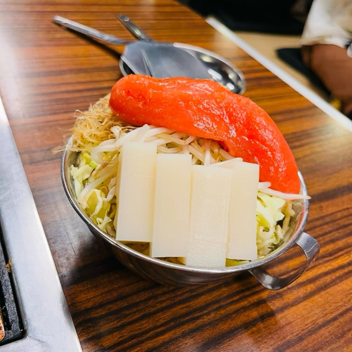 人気No. 1!自分たちでお好みの焼き方で楽しめます。とろけるお餅とチーズがたまりませんっ!明太子は贅沢にまるまる1本入っているので存分に明太子を楽しめるもんじゃで美味しかったです♪
