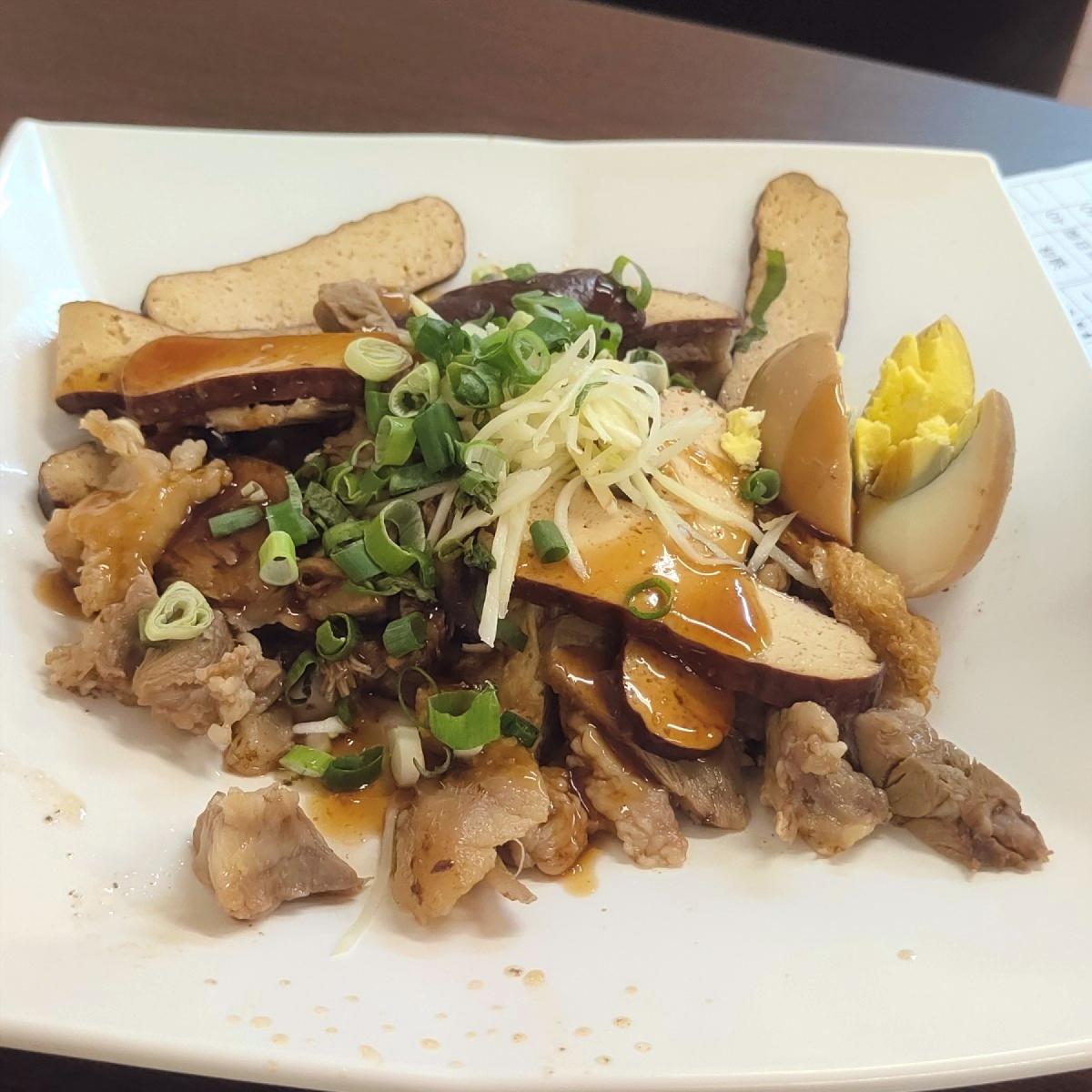 ルーロー卵、豆包、黒豆干を注文しました。提供される時にはすでに醤油膏がかかっており、トッピングにはネギと生姜の千切りがあり、味自体は特に際立ってはいませんでした。