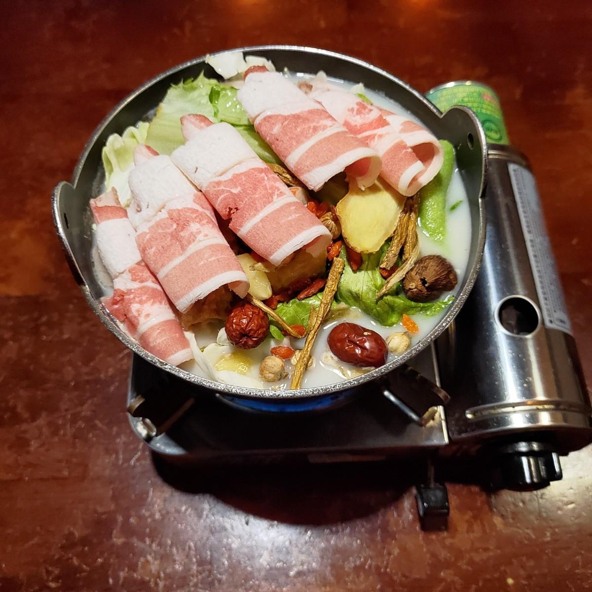 ヘルシー牛肉鍋:漢方素材を使用したスープに、漢方素材のほのかな香りと新鮮な野菜と牛肉が加わり、独特の風味を醸し出します。店内では自分でソースやドリンクを持ち帰ることができます。